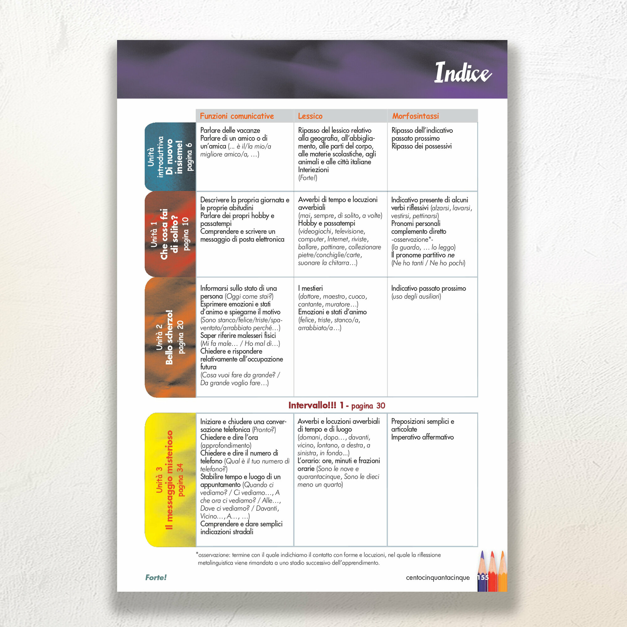 Forte! 3 rispecchia la filosofia (approccio umanistico-affettivo e una riflessione grammaticale sempre induttiva e ludica) e la struttura dell’intero corso.