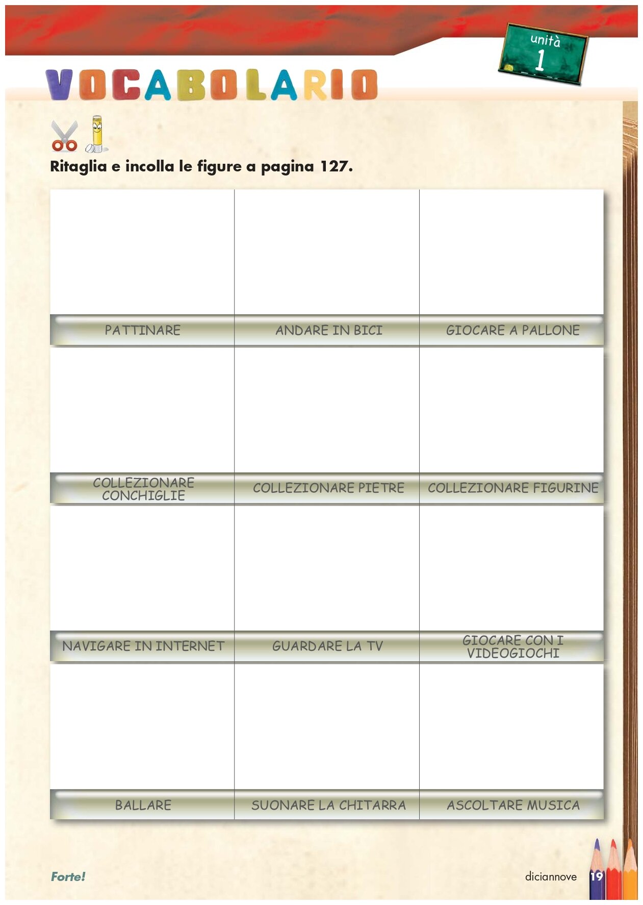 L’angolo del taglia e incolla, in appendice, con le immagini e le frasi da ritagliare e utilizzare durante le attivita proposte.