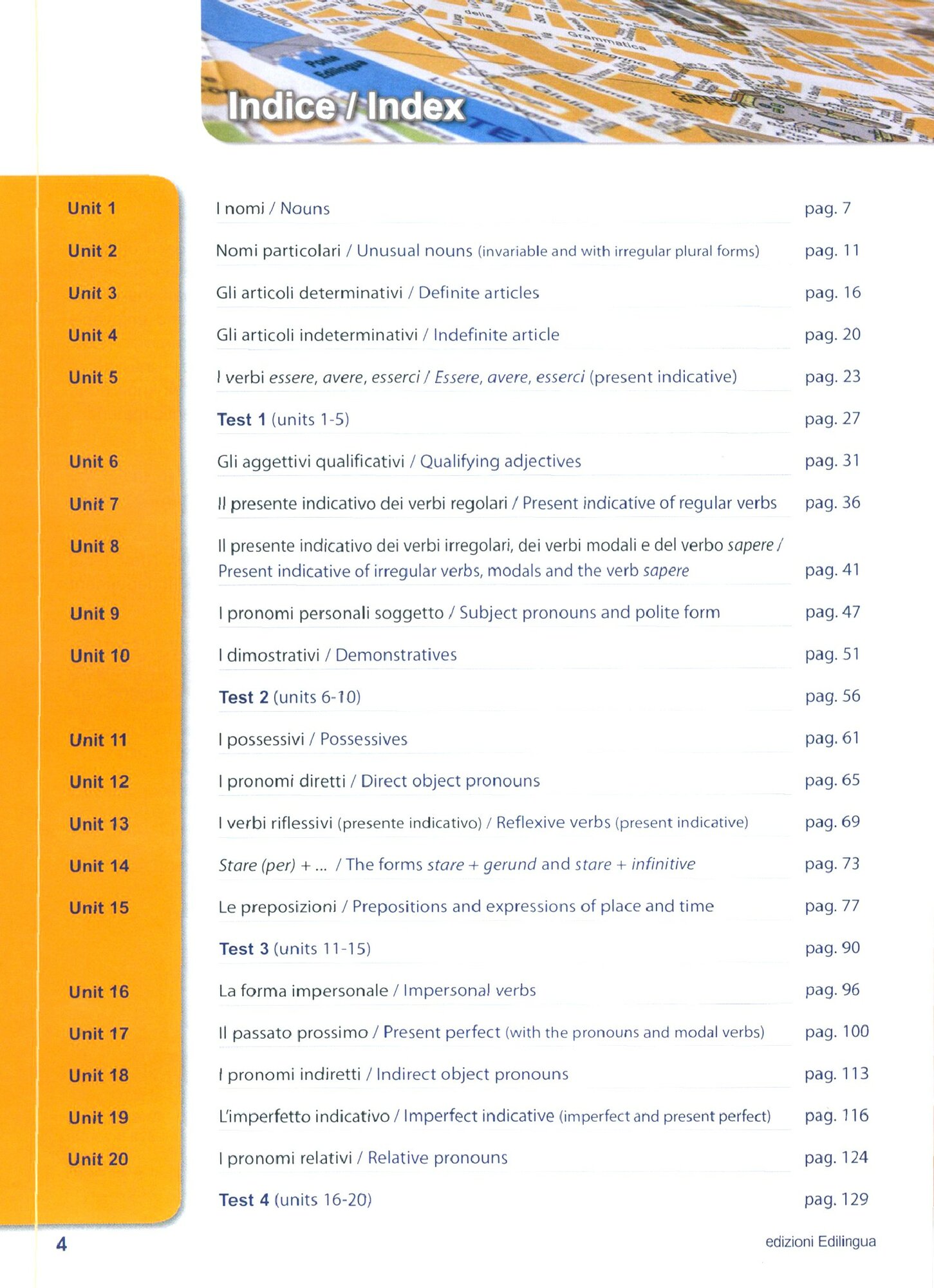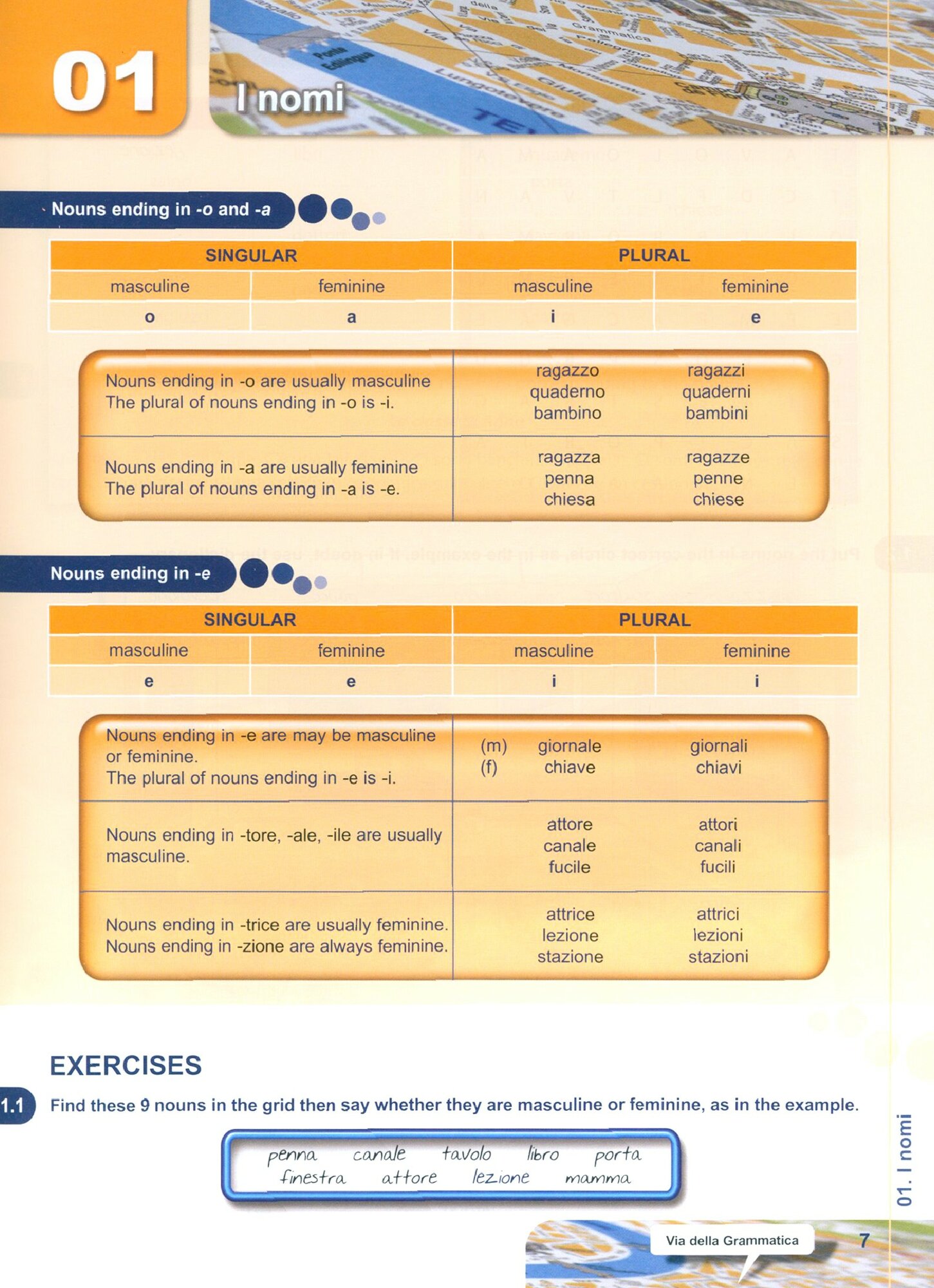 Via della Grammatica for English speakers e la versione per studenti anglofoni di Via della Grammatica. Infatti, le consegne delle attivita e le spiegazioni grammaticali sono in lingua inglese. Un glossario online (in preparazione) offre la traduzione dei termini incontrati nelle attivita.