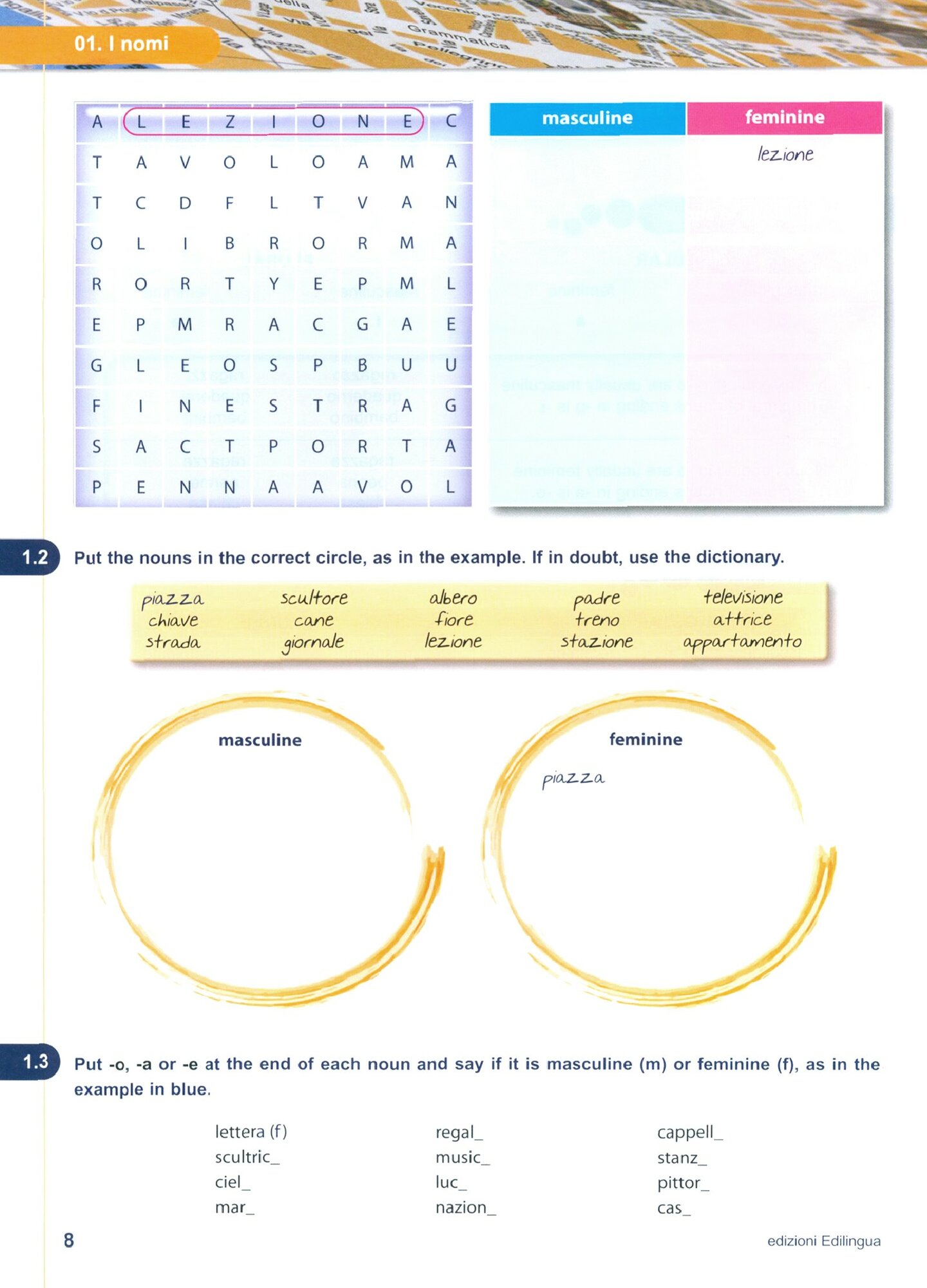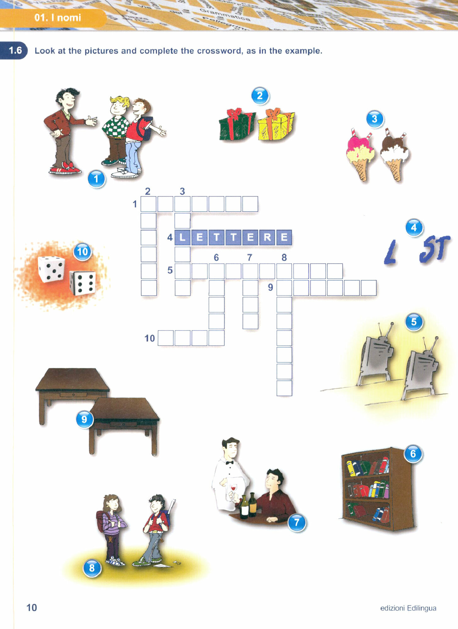 Il lessico e introdotto gradualmente e rispecchia l’uso dell’italiano corrente. A volte, nuovi gruppi semantici sono presentati uniti alla loro immagine visiva, che ne facilita l’acquisizione.