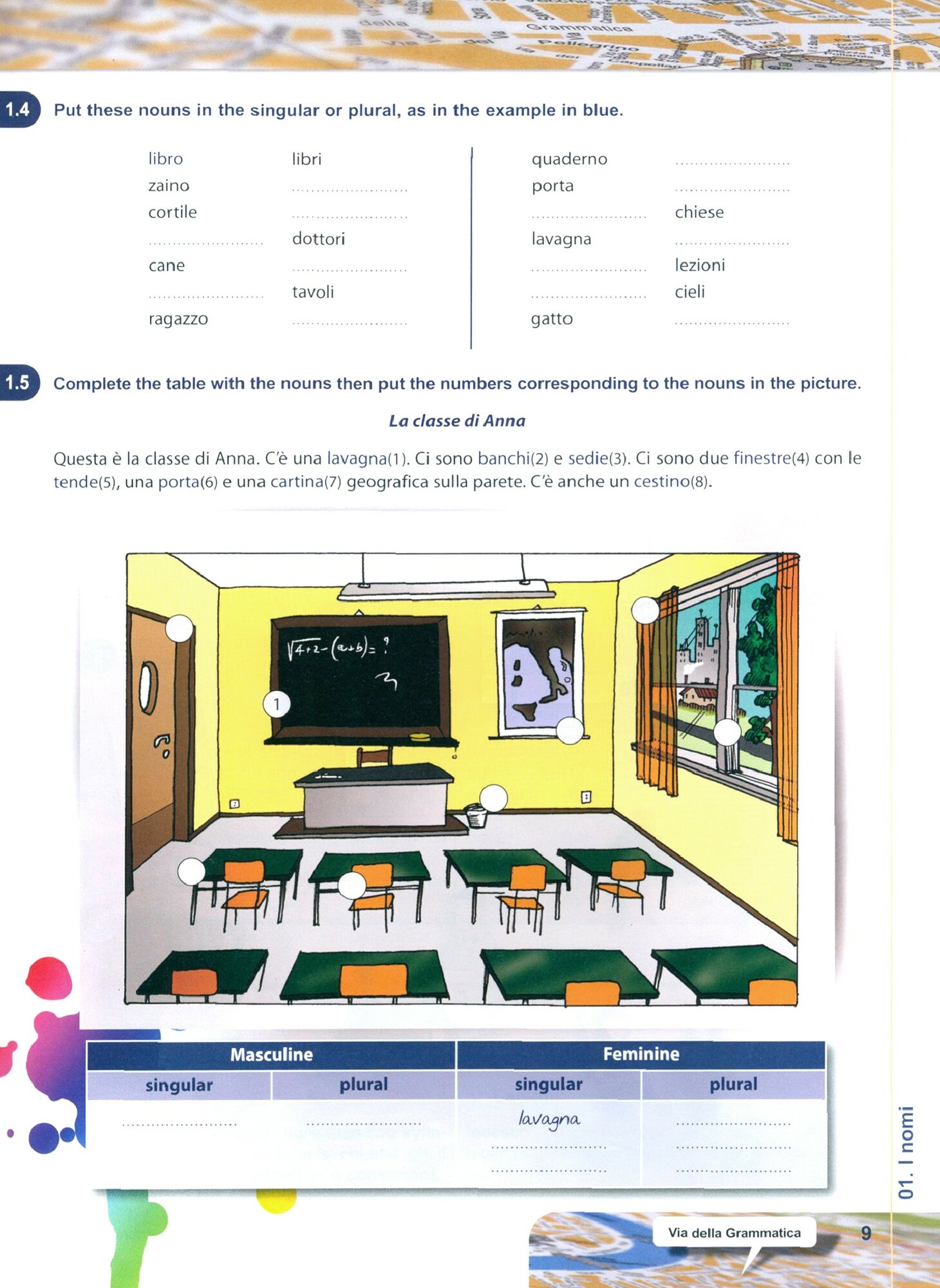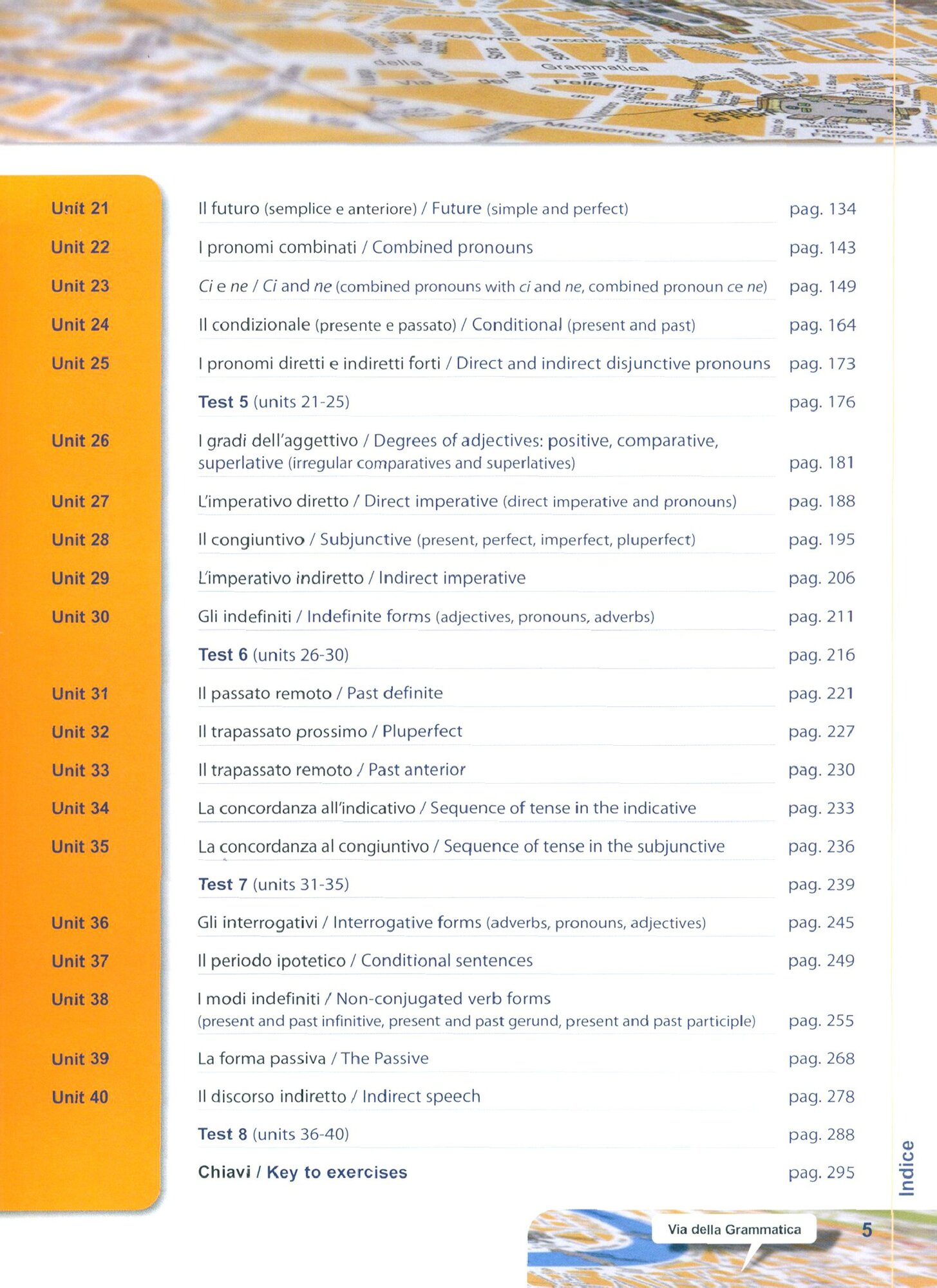 Via della Grammatica for English speaker e una grammatica pratica ed essenziale, interamente a colori, di 40 unita, ognuna delle quali affronta uno o piu argomenti grammaticali seguiti da attivita stimolanti e divertenti. Ogni 5 unita segue un test di revisione e di autovalutazione.