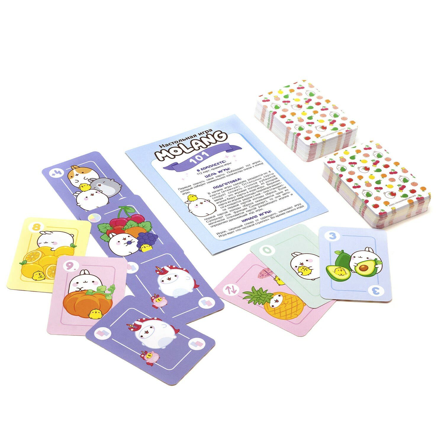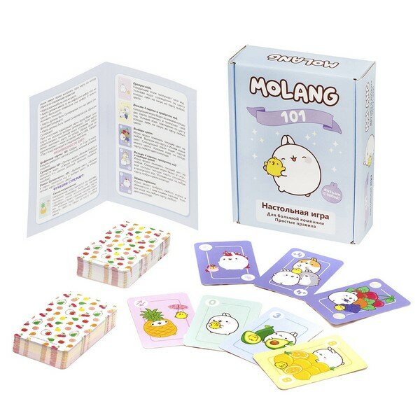 Моланг и Пиу-Пиу приглашают тебя поиграть в захватывающую игру "101"! Стань первым игроком, кто скинет все свои карты и победит соперников! Простые правила, суперкарты, быстрое и непрерывное взаимодействие с игроками не дадут скучать, а любимые персонажи устроят настоящий переполох. Бери игру с собой в дорогу или на посиделки с друзьями!