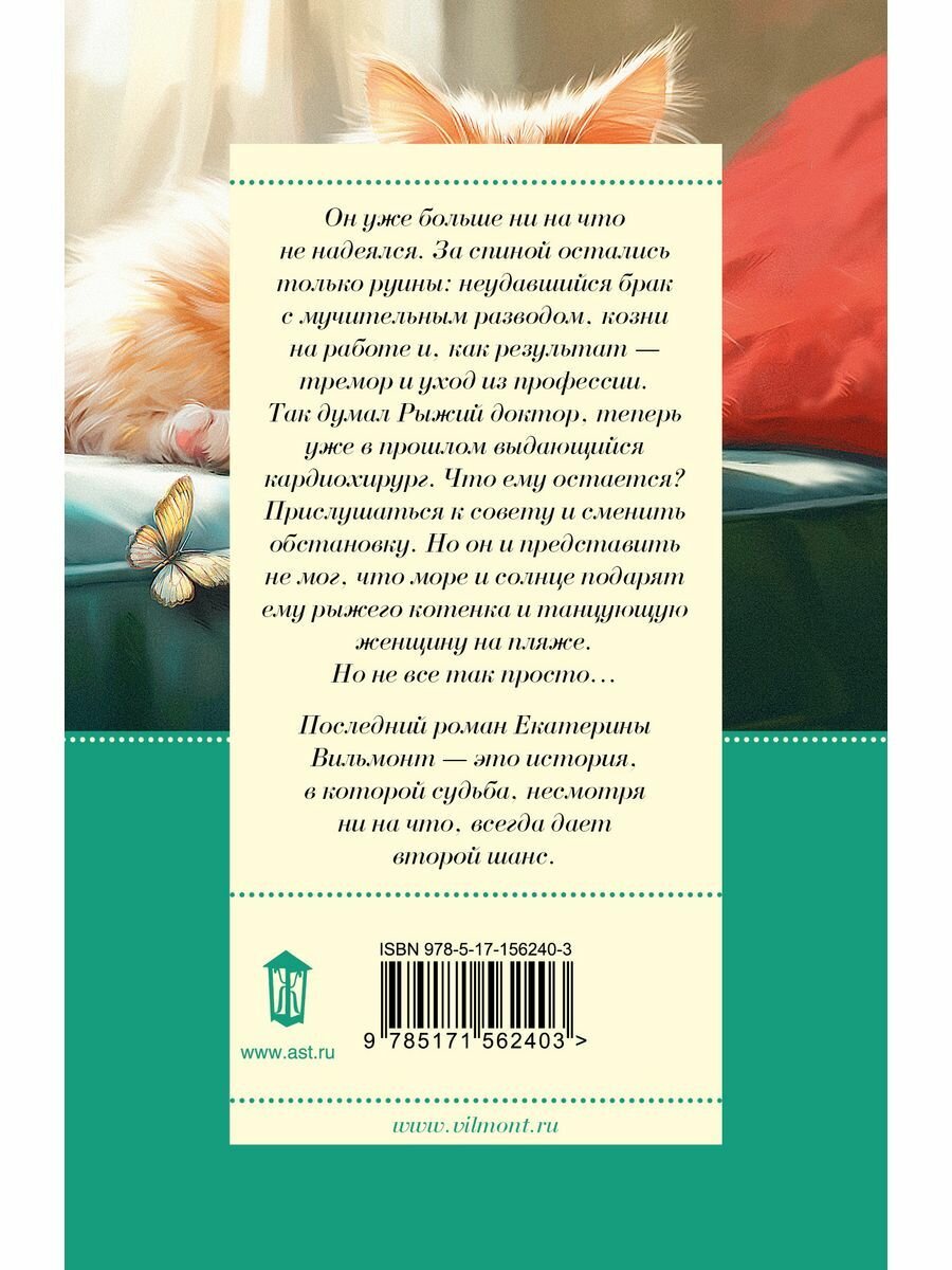 Он уже больше ни на что не надеялся. За спиной остались только руины: неудавшийся брак с мучительным разводом, козни на работе и, как результат — тремор и уход из профессии. Так думал Рыжий доктор, теперь уже в прошлом выдающийся кардиохирург. Что ему остается? Прислушаться к совету и сменить обстановку. Но он и представить не мог, что море и солнце подарят ему рыжего котенка и танцующую женщину на пляже. Но не все так просто… Последний роман Екатерины Вильмонт — это история, в которой судьба, несмотря ни на что, всегда дает второй шанс.