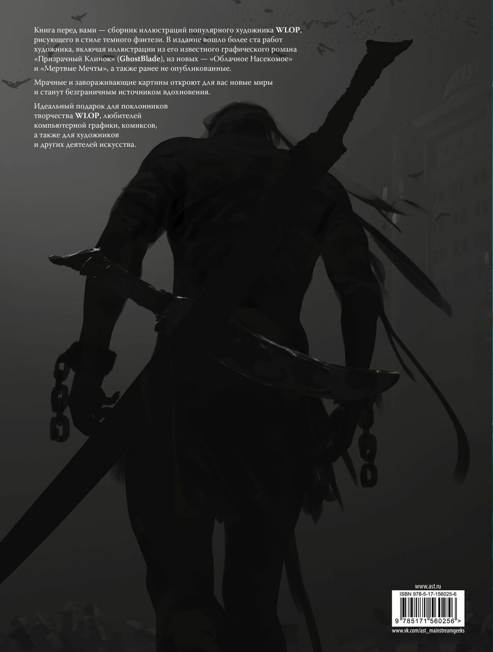 Книга перед вами — сборник иллюстраций популярного художника WLOP, рисующего в стиле темного фэнтези. В издание вошло более ста работ художника, включая иллюстрации из его известного графического романа «Призрачный Клинок» (GhostBlade), из новых — «Облачное Насекомое» и «Мертвые Мечты», а также ранее не опубликованные. Мрачные и завораживающие картины откроют для вас новые миры и станут безграничным источником вдохновения. Идеальный подарок для поклонников творчества WLOP, любителей компьютерной графики, комиксов, а также для художников и других деятелей искусства.