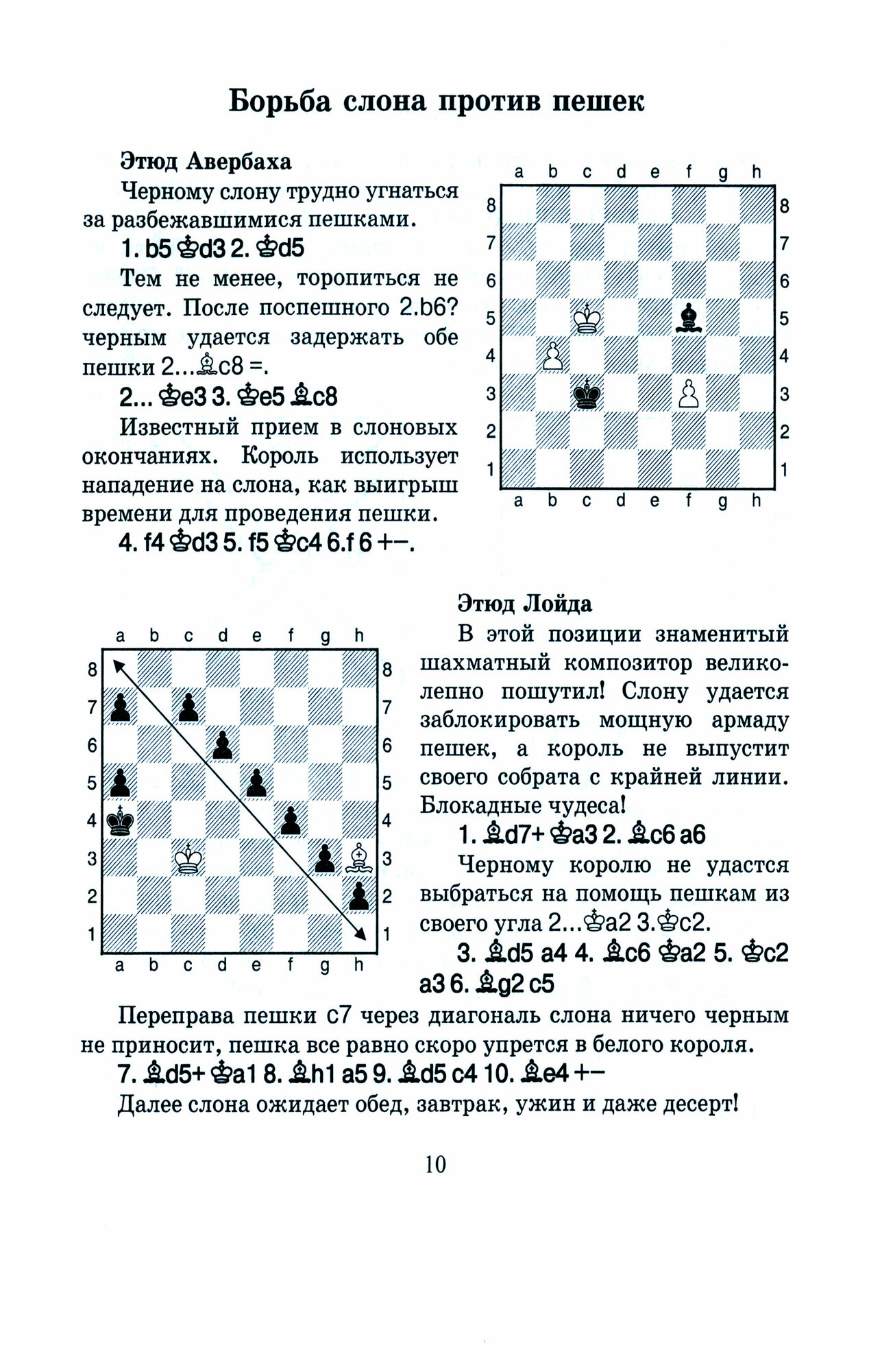 Данное издание состоит из учебной части, где подробно объясняются типовые приемы борьбы и идеи в слоновых окончаниях, и практикума, включающего более 200 задач и этюдов.
