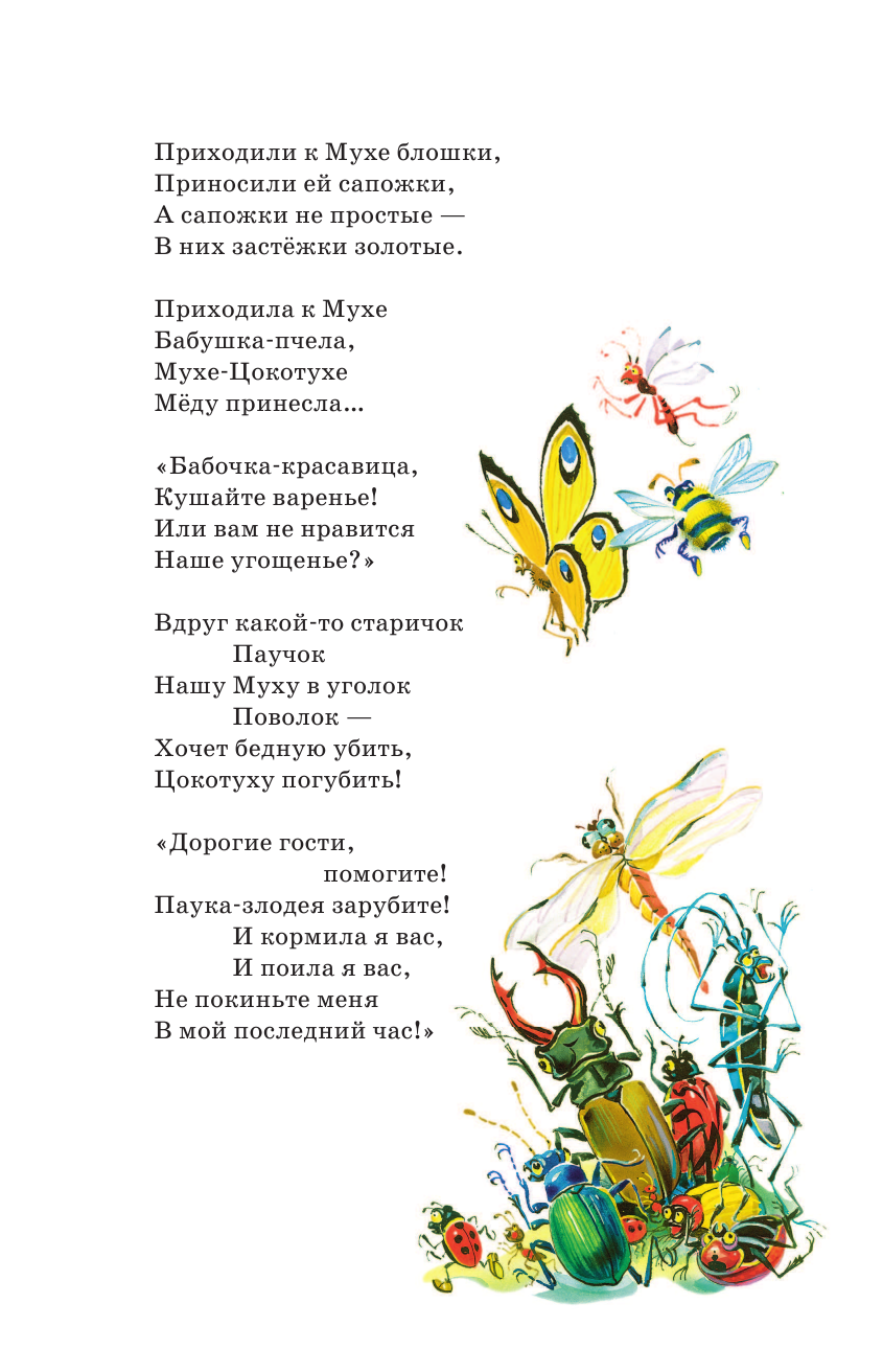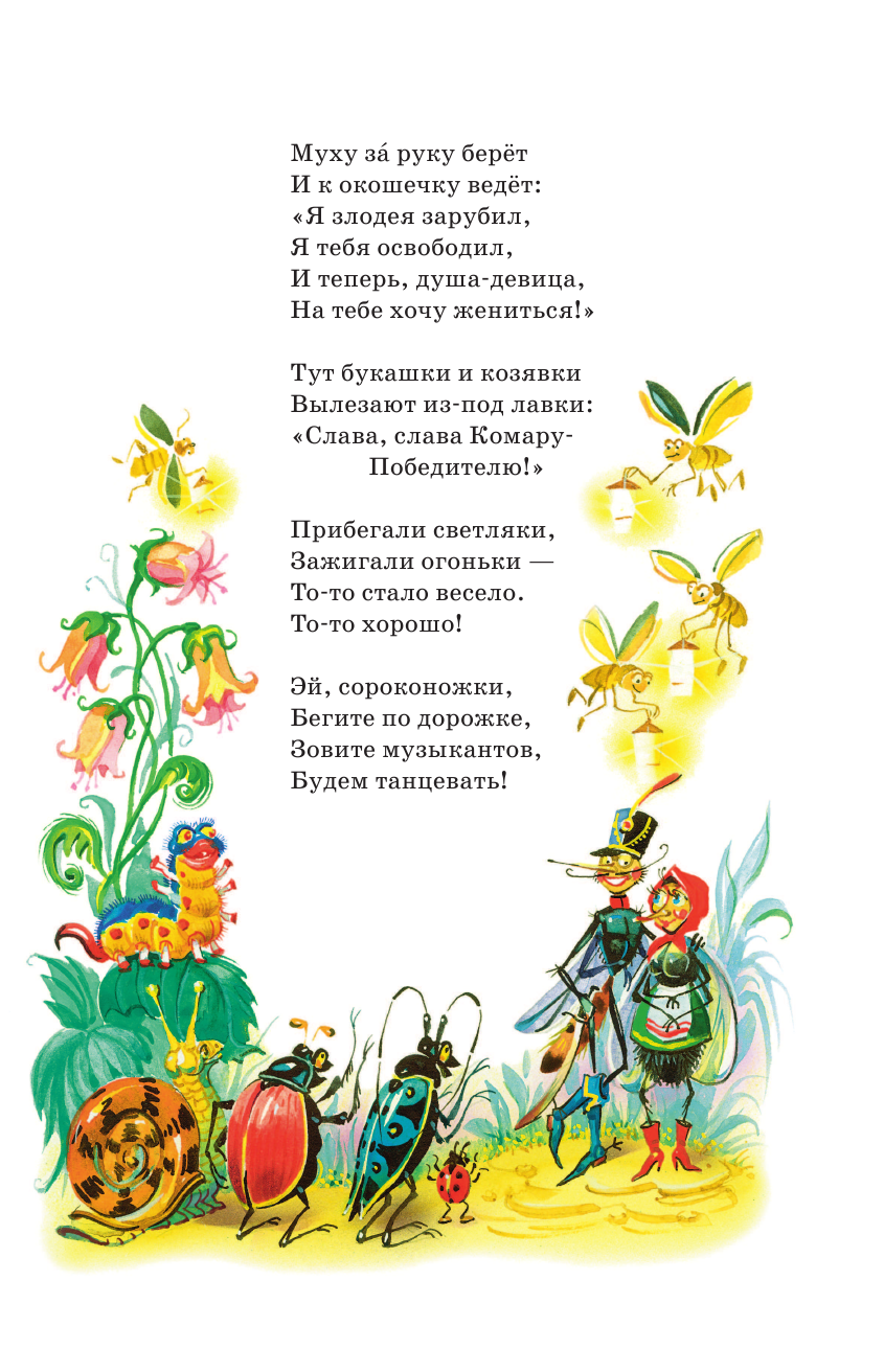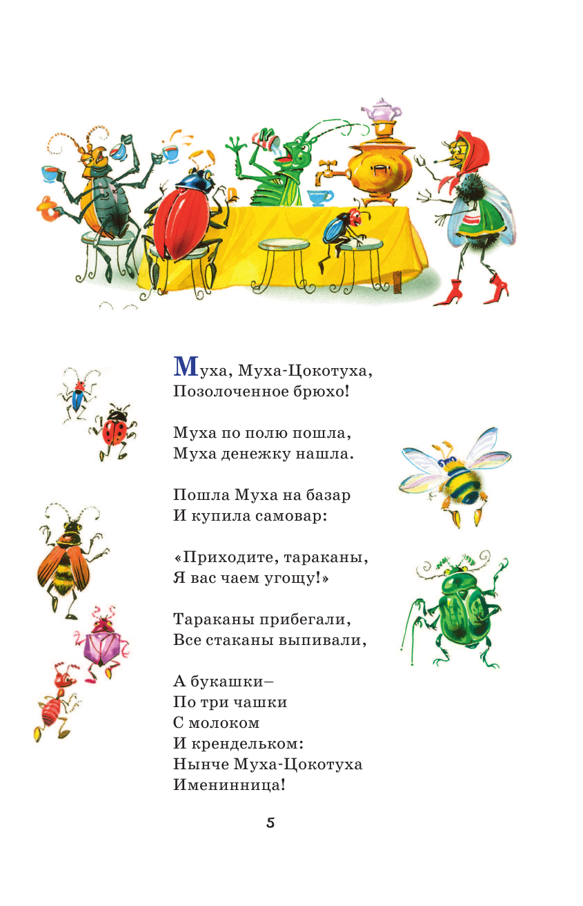 В мире сказок Корнея Ивановича Чуковского постоянно случаются невероятные события: крокодил звонит по телефону, чтобы заказать на ужин калоши, горящее море пожарные тушат пирогами и блинами, добрый доктор Айболит лечит зверят в далёкой Африке, а Великий Мойдодыр учит ребят умываться. Стихи классика детской литературы окажут ребёнку незаменимую помощь в познании русского языка, знакомстве с чувством ритма и, конечно, развитии воображения.