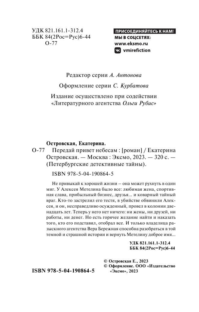 Книга: Передай привет небесам (Островская Екатерина Михайловна); Эксмо-Пресс, 2023