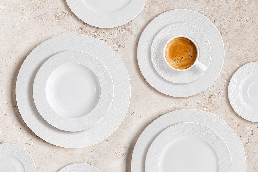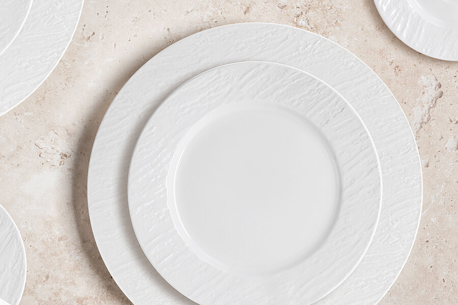 Коллекция Rock – это реализация настоящих фантазий. Рельефные элементы белых узоров, напоминающих скалистый берег, в сочетании с белизной фарфора и блеском глазури – отличный вариант сервировки не только для современного интерьера, но также гармонично будет смотреться в любом интерьере.Эта коллекция может быть использована в разных стилях оформления.Сервировка стола с использованием белого фарфора создает атмосферу элегантности, чистоты и роскоши!Предметы коллекции Rock можно мыть в посудомоечной машине и использовать в микроволновой печи.