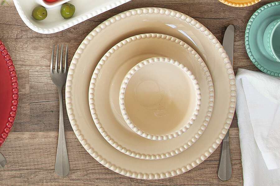 Название коллекции Tiffany красиво передает её дизайн в виде "жемчужин", как будто нанизанных на края изделий.Имя ювелирной компании Tiffany & Co давно стало нарицательным и олицетворяет собой роскошь, изысканность и утончённость.Довольно простые формы изделий вместе с декором смотрятся также безупречно как ожерелья из жемчуга - идеальная классика вне времени и пространства.В коллекции несколько цветов: бежевый, бургунди, аквамарин, белый, светло-зелёный, красный, серый и тёмно-серый.Цвета идеально сочетаются между собой. Яркий глянец - точное завершение дизайна коллекции.Красный с белым - красивое сочетание для новогодней сервировки; посуда Tiffany в других цветах добавит стиля и внесёт новое звучание в классическую тему.Предметы коллекции Tiffany можно использовать в микроволновой печи и мыть в посудомоечной машине.