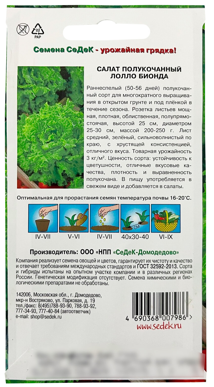 Сервис сравнения цен СкидкаГИД предлагает сравнить цены на товар «Салат Лолло Бионда СеДек»