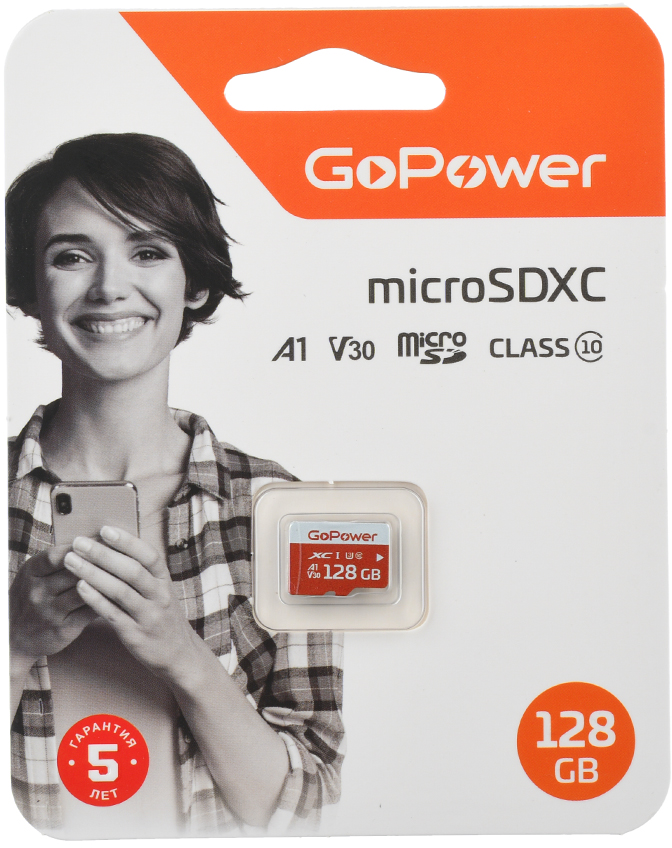 Карта памяти 128GB GoPower microSDXC Class10 UHS-I (U3) 100 МБ/сек V30 без адаптера 00-00025683