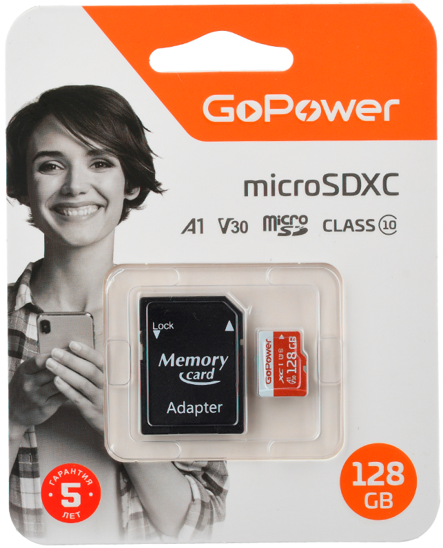 Флэш-карты microSDXC GoPower Ultra High Speed UHS-I (U3) премиальной линейки карт памяти GoPower с высокой скоростью передачи данных и высочайшей надежностью. Предназначены для устройств с интенсивной записью данных, таких как видеорегистраторы и любые системы видеонаблюдения, экшен камеры, смартфоны и др. Производятся на основе премиальных, лучших в отрасли компонентов. Класс производительности по скорости запуска приложений – A1.