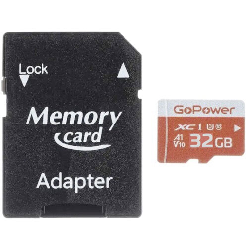 Карта памяти 32GB GoPower microSDXC Class10 UHS-I (U3) 80 МБ/сек V10 с адаптером 00-00025679