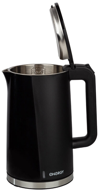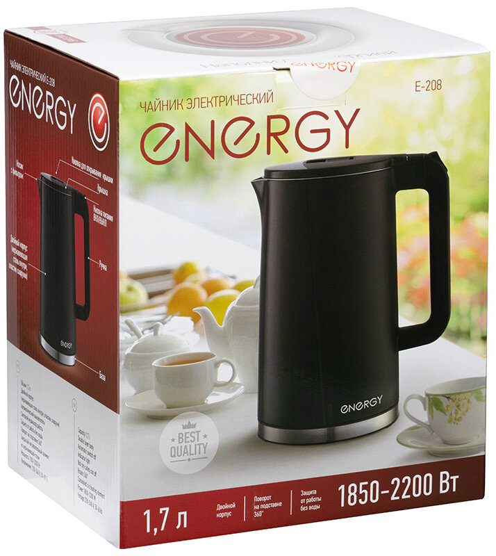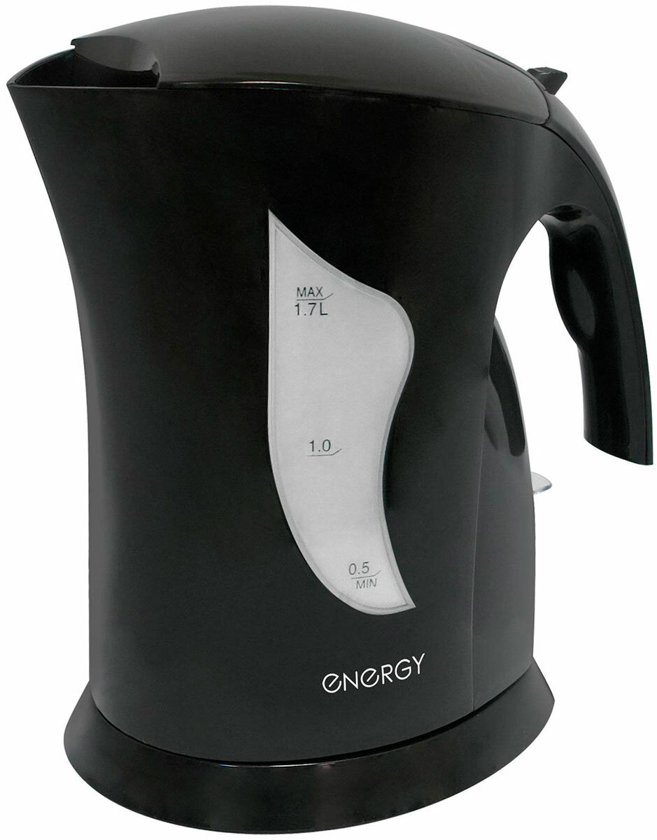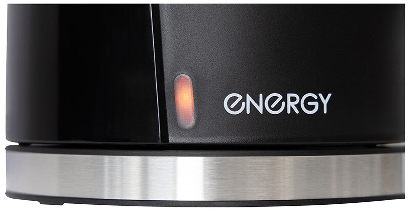 **Электрический чайник Energy E-208** стильного чёрного цвета объёмом 1.7 л в минималистичном дизайне впишется в любую кухню.