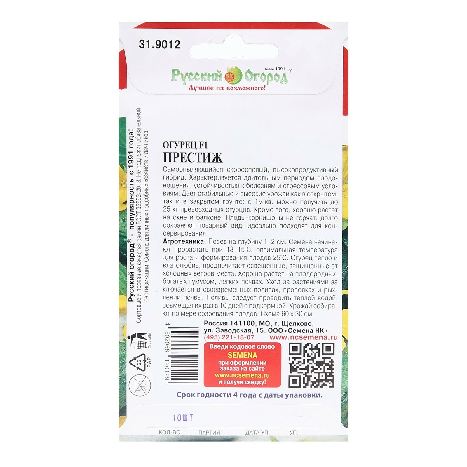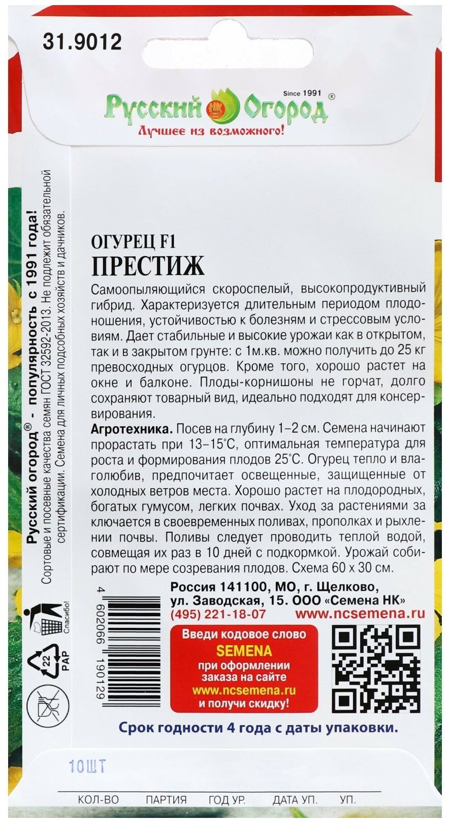 Огурец Престиж F1 Русский огород