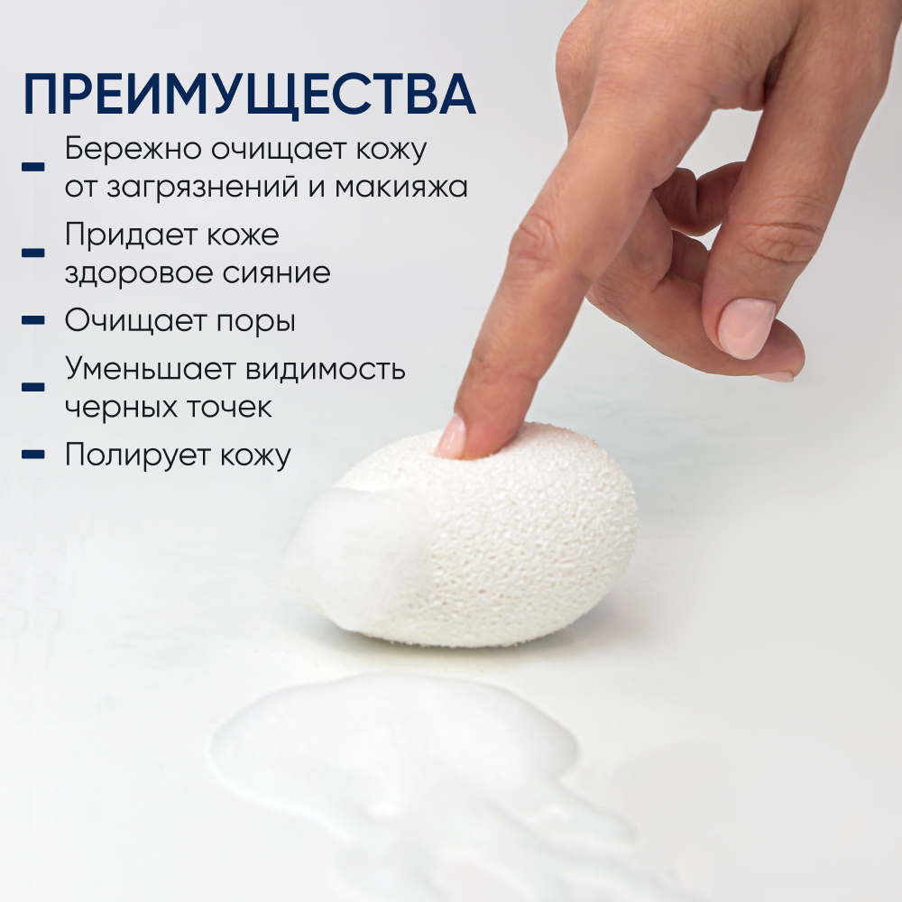 Спонж для умывания обеспечивает очищение от всех загрязнений, бережно очищает кожу от макияжа, удаляет ороговевшие клетки. Подходит для ежедневной процедуры очищения и массажа лица. Нежный материал спонжа подходит для сухой и чувствительной кожи, не травмируя её. Спонж удобно держать в руке, а скошенный край отлично подходит для проработки труднодоступных участков.