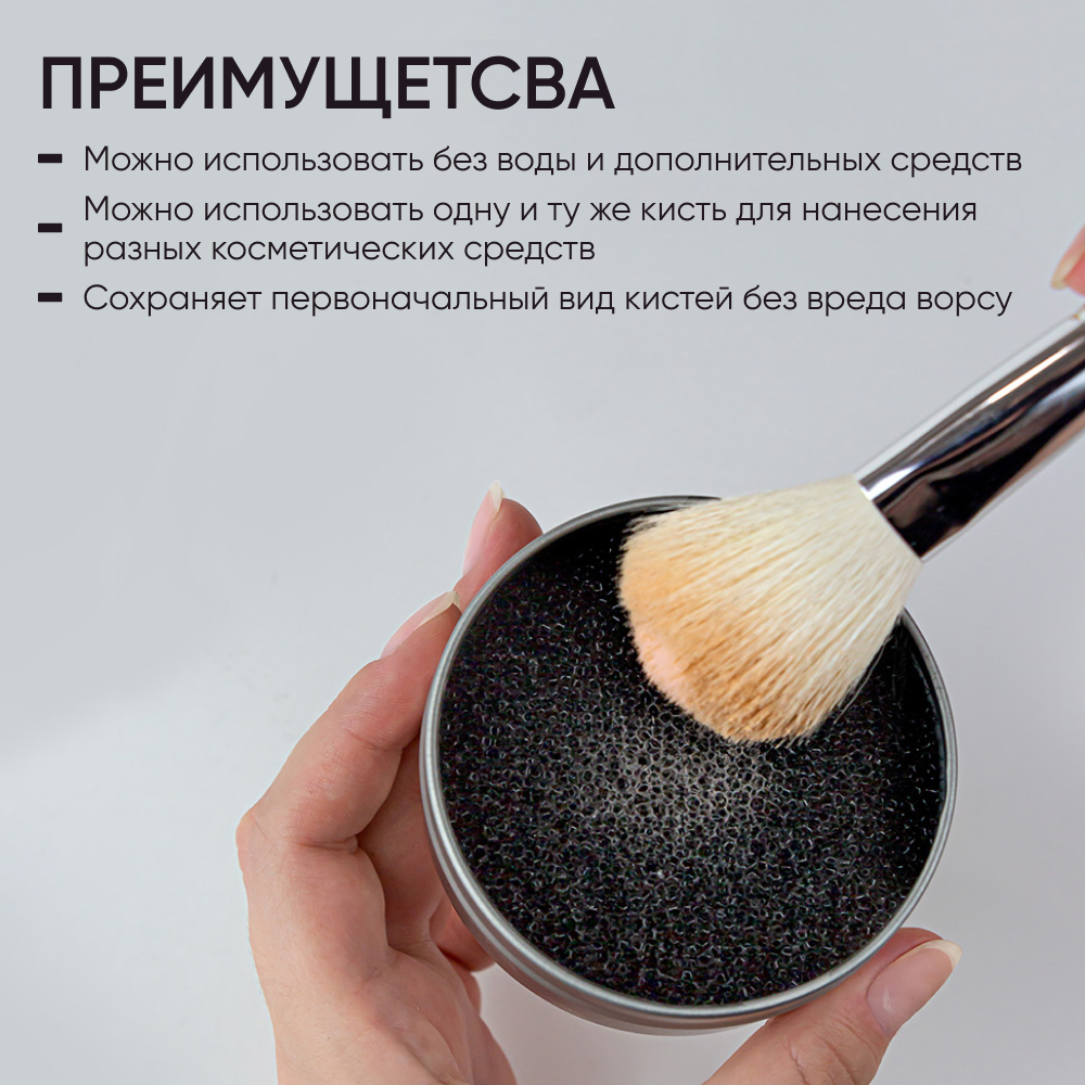 Губка для сухого очищения кистей Brush Dry Cleaner Sponge — незаменимый помощник при повседневном уходе за кистями из натурального ворса, которые боятся частого намокания. Пористая структура губки позволяет производить быструю очистку от пудровых текстур без использования воды и дополнительных средств. Также благодаря быстрому очищению кистей с помощью губки, можно использовать одну и ту же кисть для одновременного нанесения разных косметических средств.