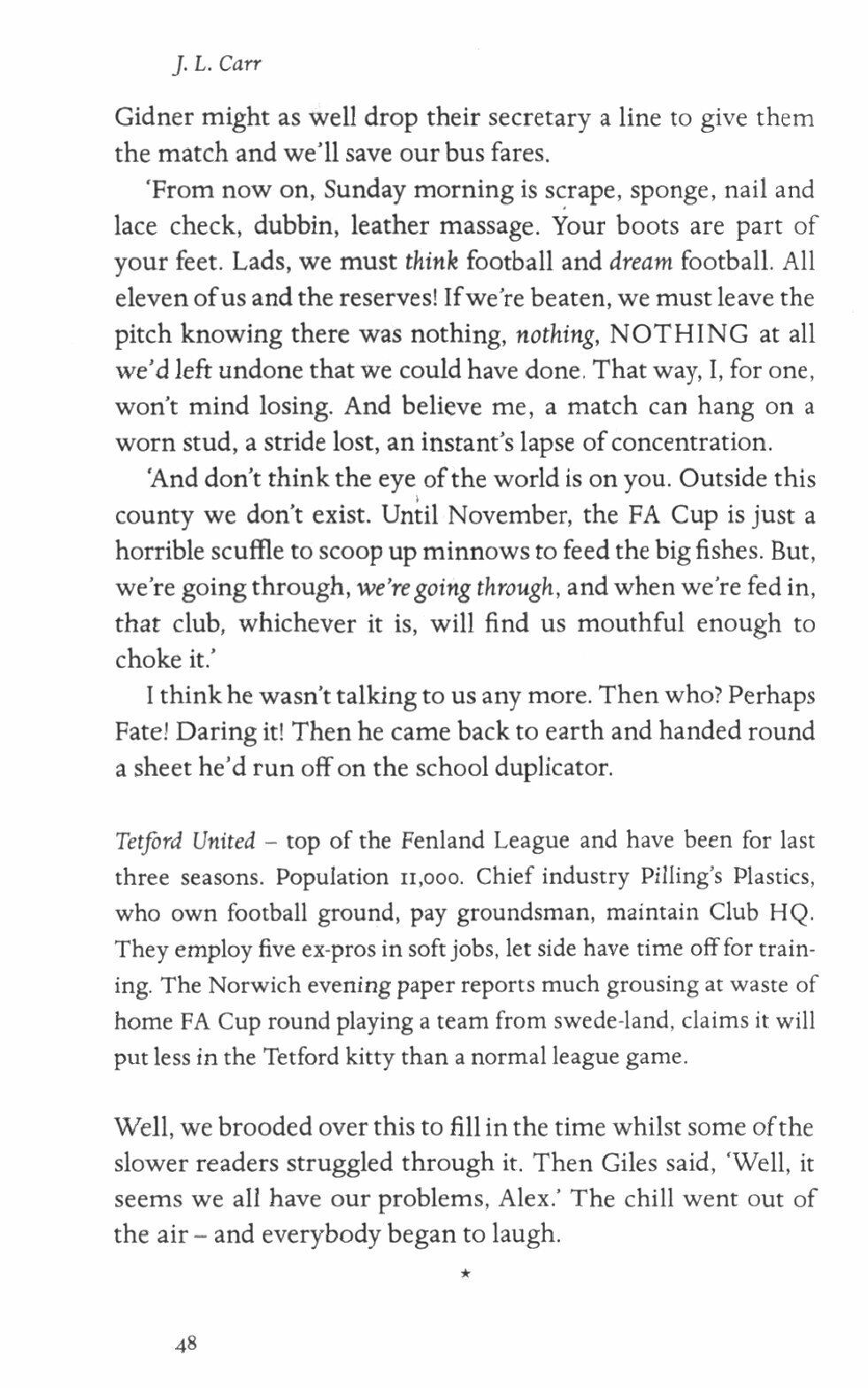 In their new all-buttercup-yellow-stripe, Steeple Sinderby Wanderers, who usually feel lucky when their pitch is above water-level, are England's most obscure team. This uncategorizable, surreal and extremely funny novel is the story of how they start the season by ravaging the Fenland League and end it by going all the way to Wembley.