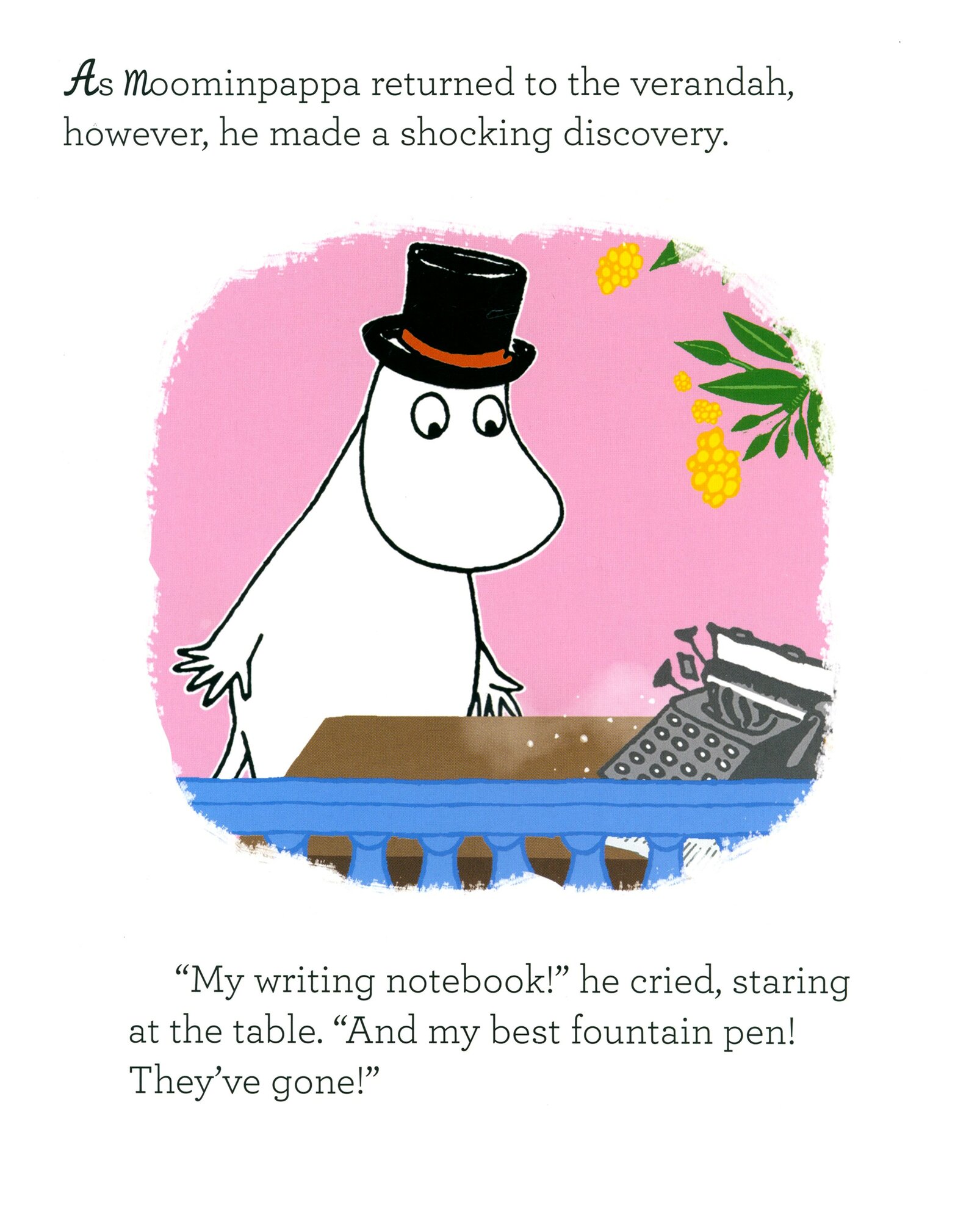 It's a long, lazy midsummer afternoon in Moominvalley and the whole family are relaxing outdoors. But suddenly Moominpappa's precious notebook and fountain pen vanish, and the garden starts to feel unseasonably cold. Can Moomintroll and his friends follow the clues and solve this curious mystery?