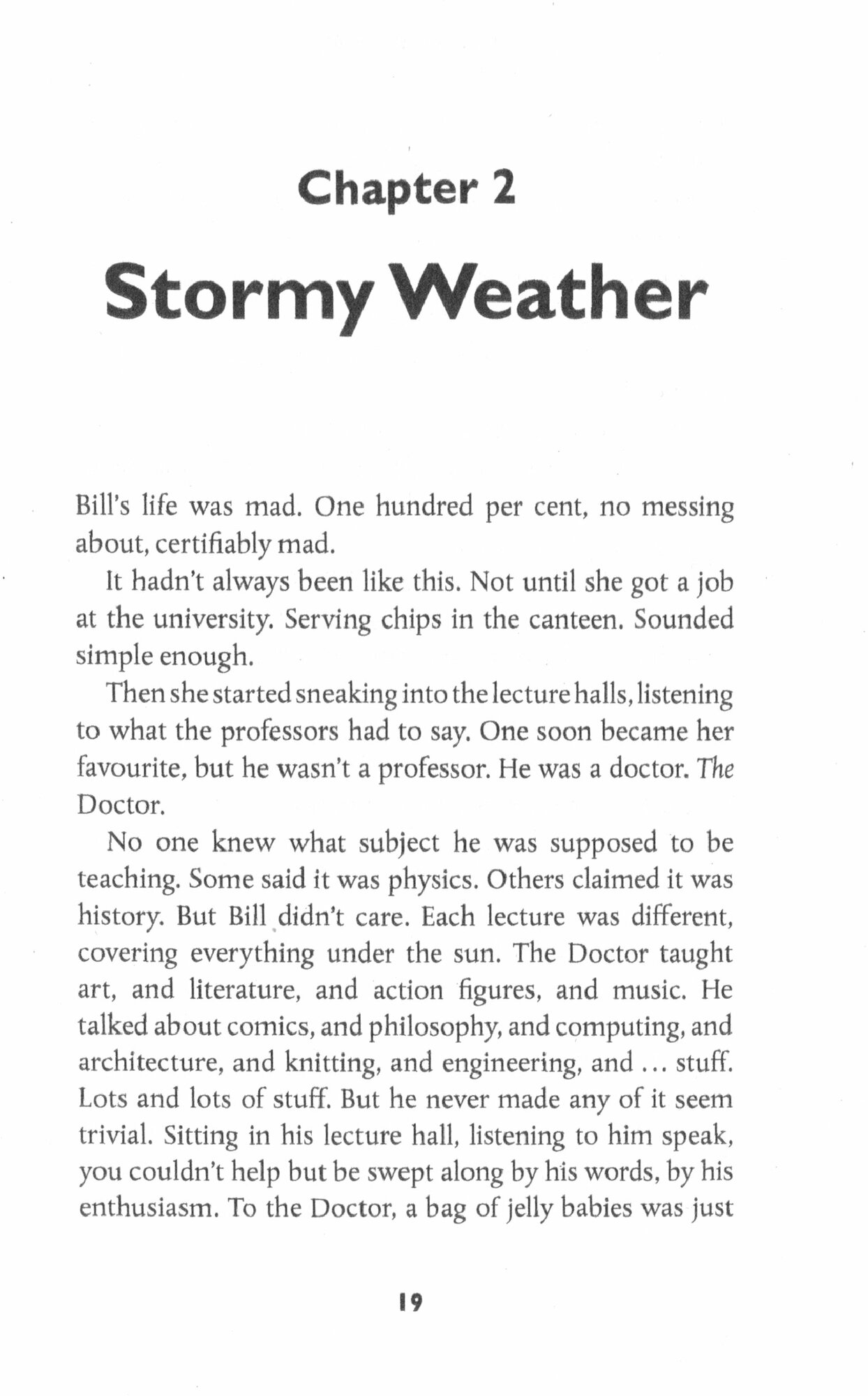 But help is on its way, in the form of a strange man called the Doctor and his friend, Bill. The Doctor will keep us safe. The Doctor will stop the monsters. Unless the monsters stop the Doctor first...