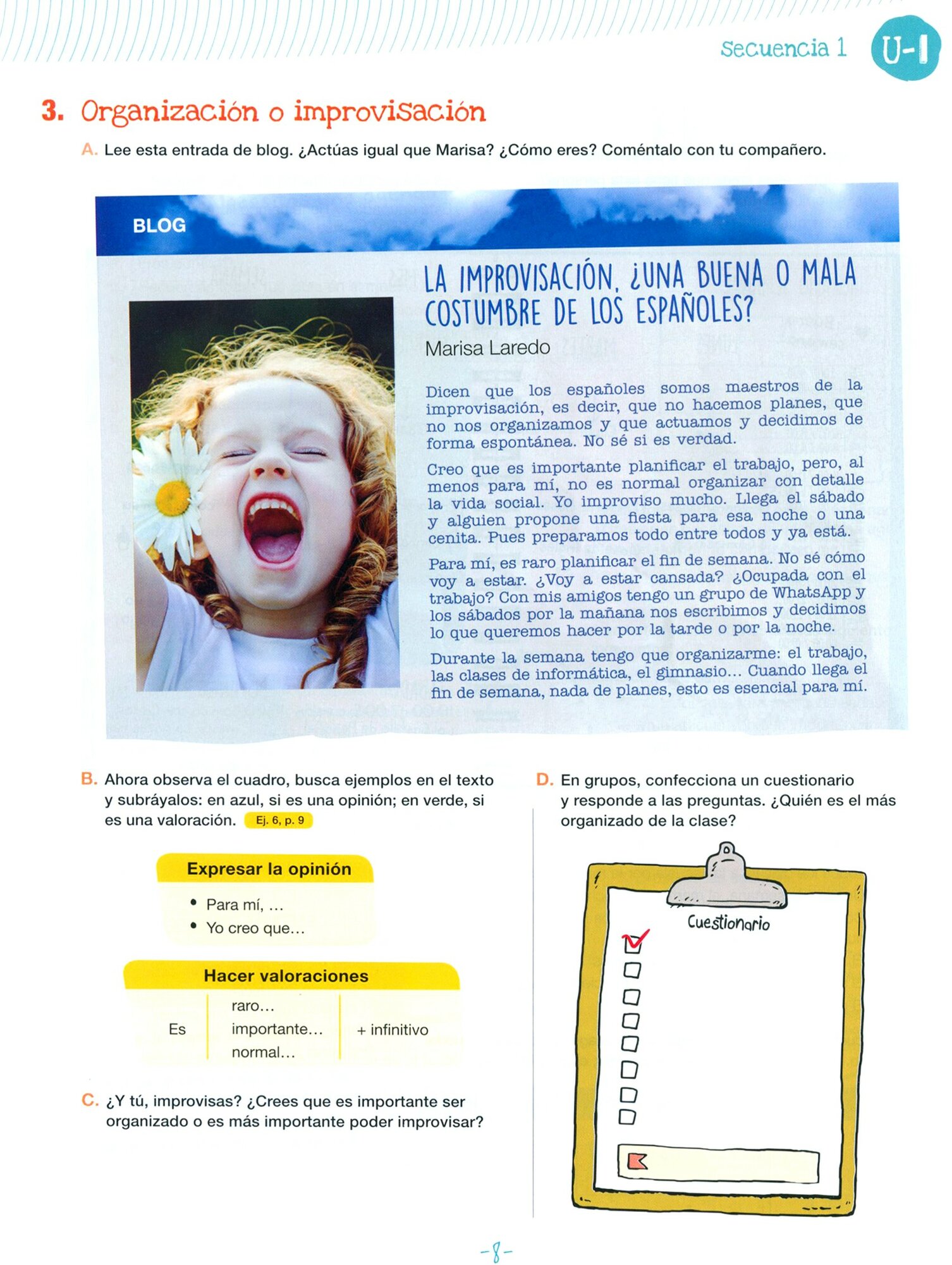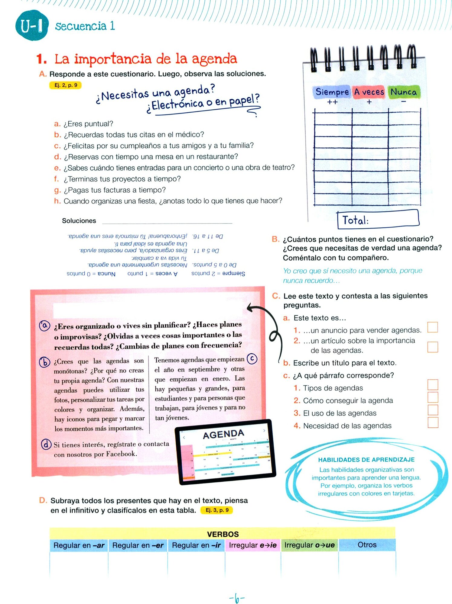 Al final de cada volumen, propone una autoevaluacion, un resumen de gramatica, un glosario y las transcripciones del material audiovisual.