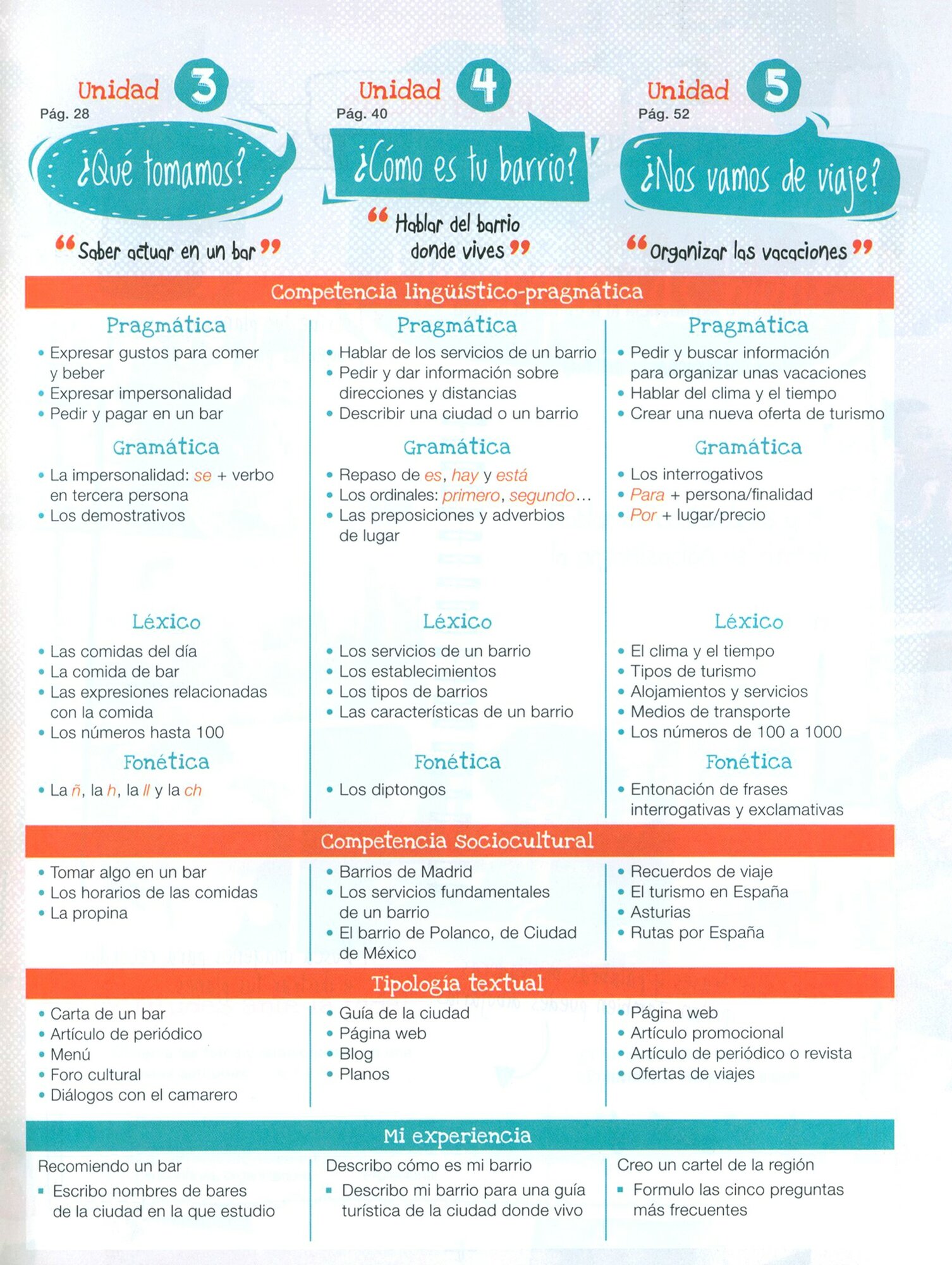 Cada libro consta de 5 unidades y cada unidad esta dividida en 2 secuencias u objetivos de aprendizaje con sus ejercicios.