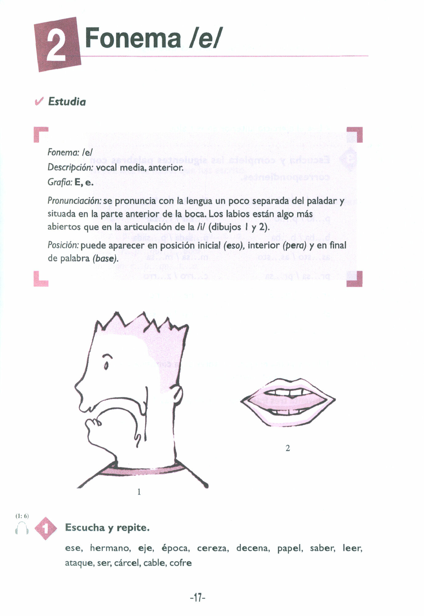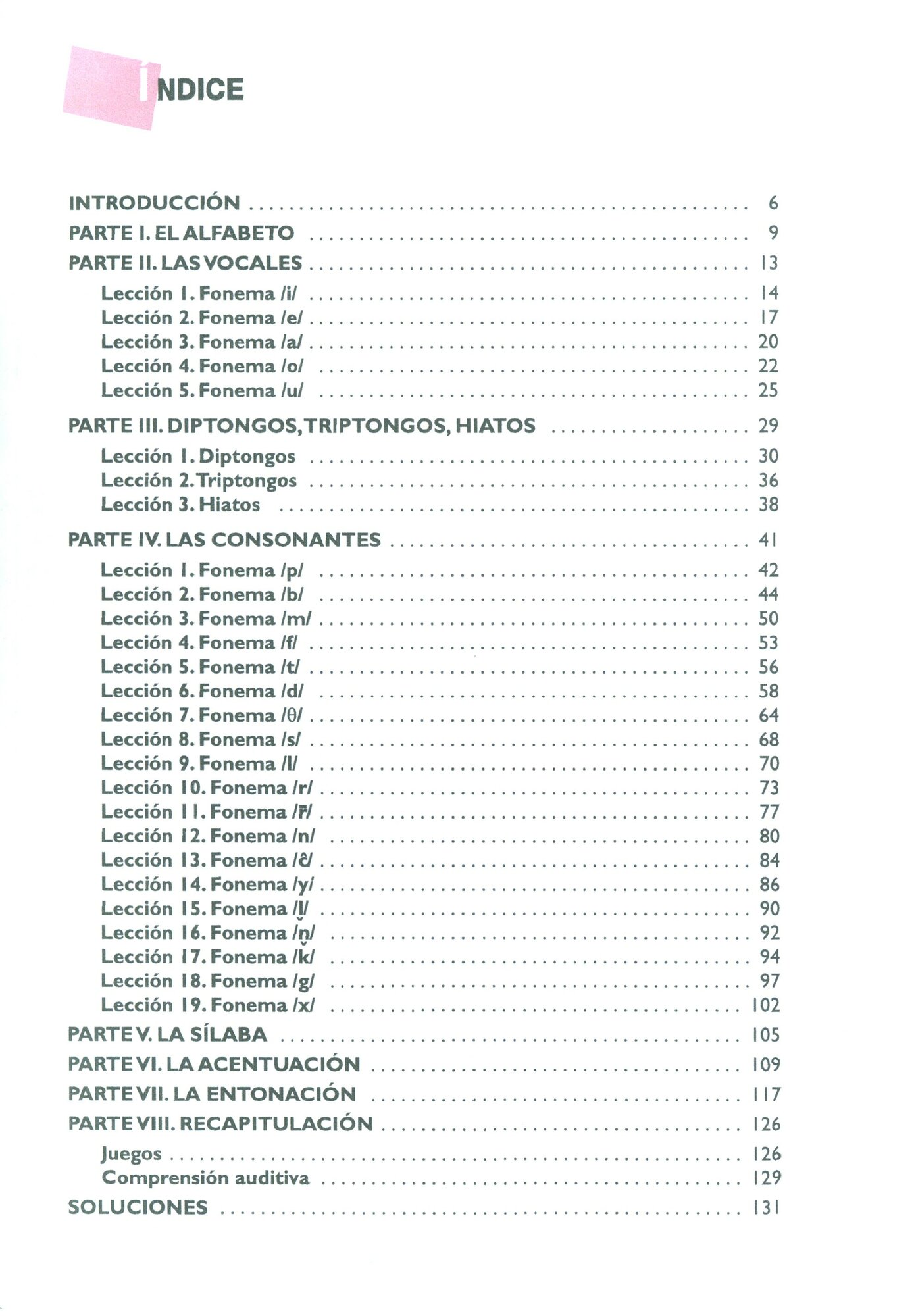 Un estudio gradual teorico-practico del sistema fonologico espanol para estudiantes de Espanol como Lengua Extranjera. Cada unidad comienza con una ficha explicativa de la manera de pronunciar las consonantes y las vocales y con una representacion grafica de su sonido. Gran variedad de ejercicios audio para la practica de la entonacion, la comprension auditiva y la pronunciacion. Tambien ofrece una recapitulacion y soluciones a todos los ejercicios. De acuerdo con el actual Plan Curricular del Instituto del Instituto Cervantes.