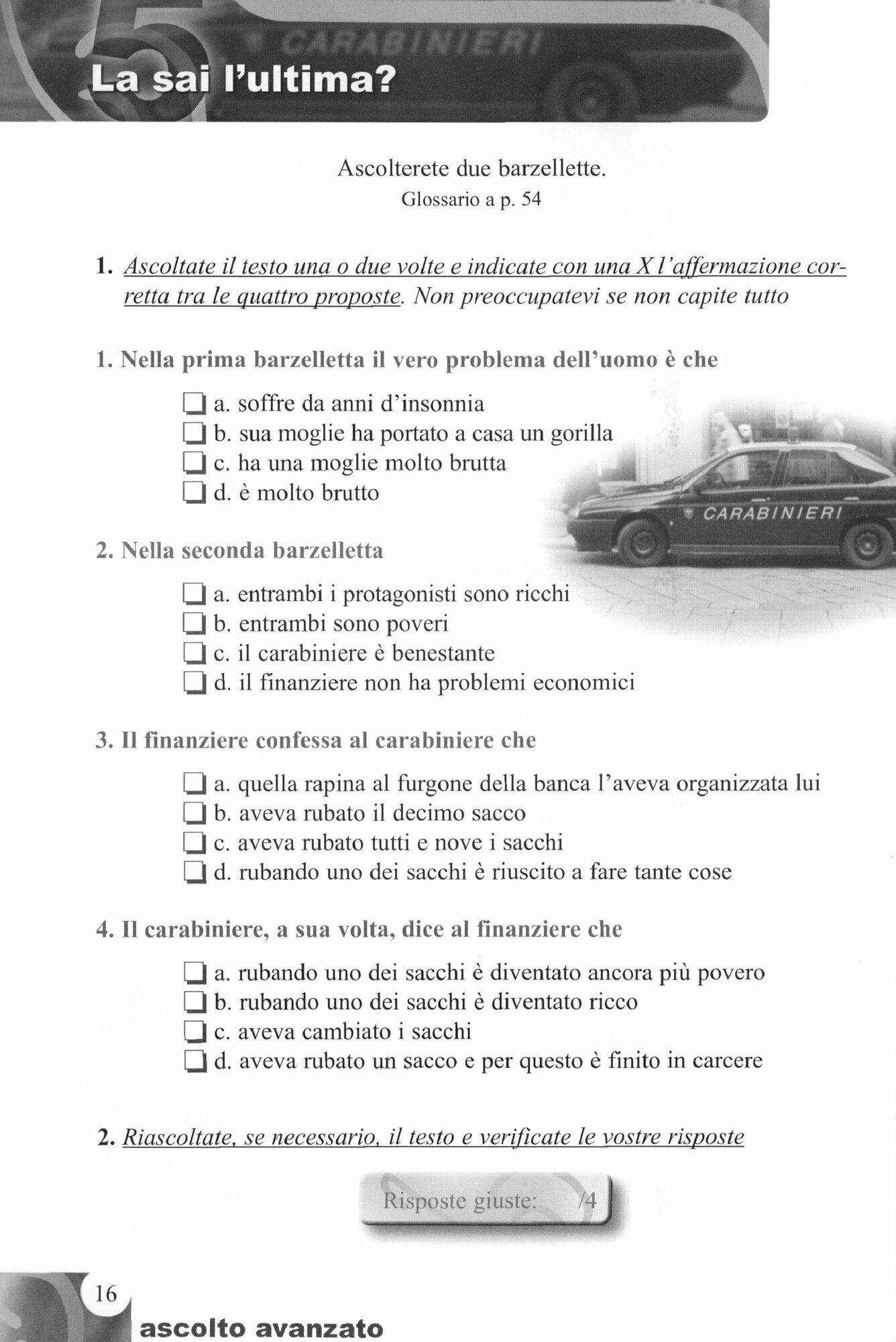 Ascolto Avanzato e accompagnato da un CD audio (60 minuti) per lo studente e dal libro con le trascrizioni dei testi e le chiavi degli esercizi.