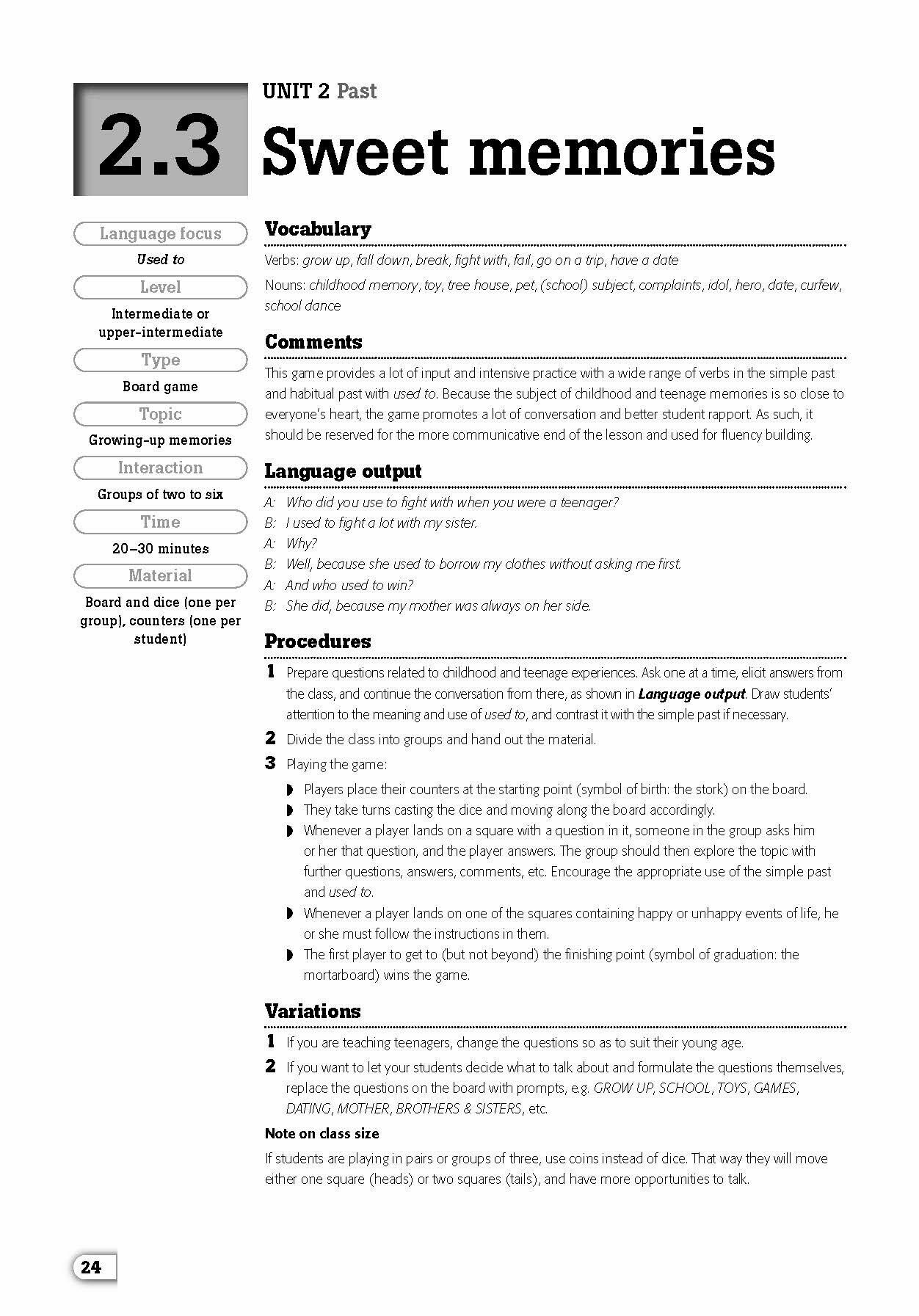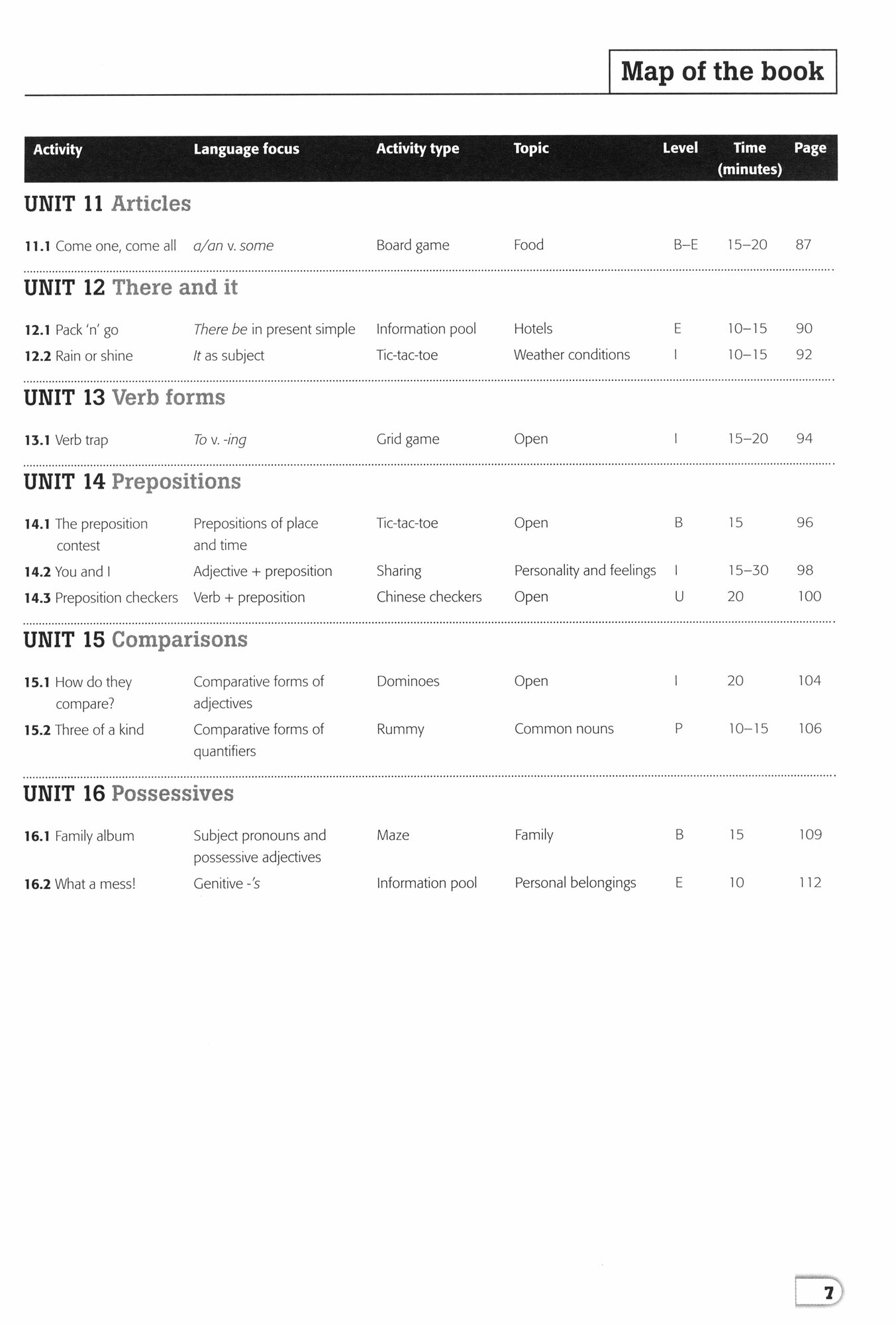 Games for Grammar Practice is a teacher's resource book containing a selection of more than forty games and activities for grammar practice. The activities are designed to promote intensive and interactive practice with learners of all ages from elementary to advanced level. Photocopiable pages and step-by-step instructions provide instant supplementary activities for busy teachers. The emphasis on peer interaction and cooperation helps students find grammar practice meaningful and rewarding. The grammar areas covered in the book are all commonly found in courses, making the activities easy to slot into a lesson.