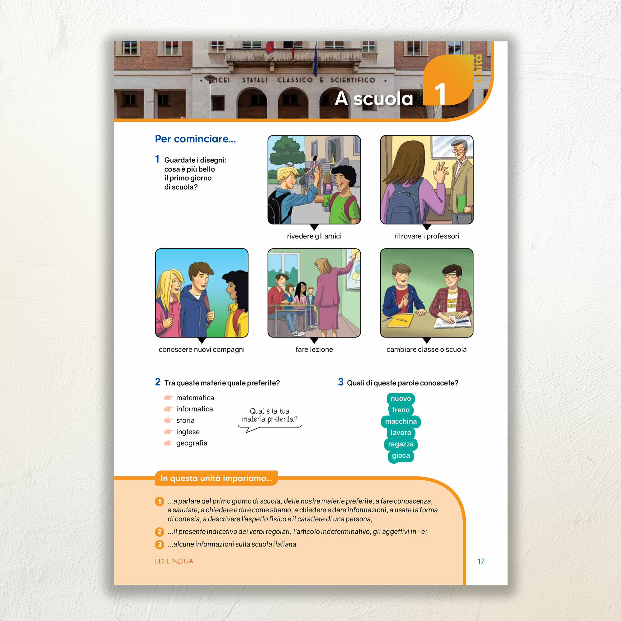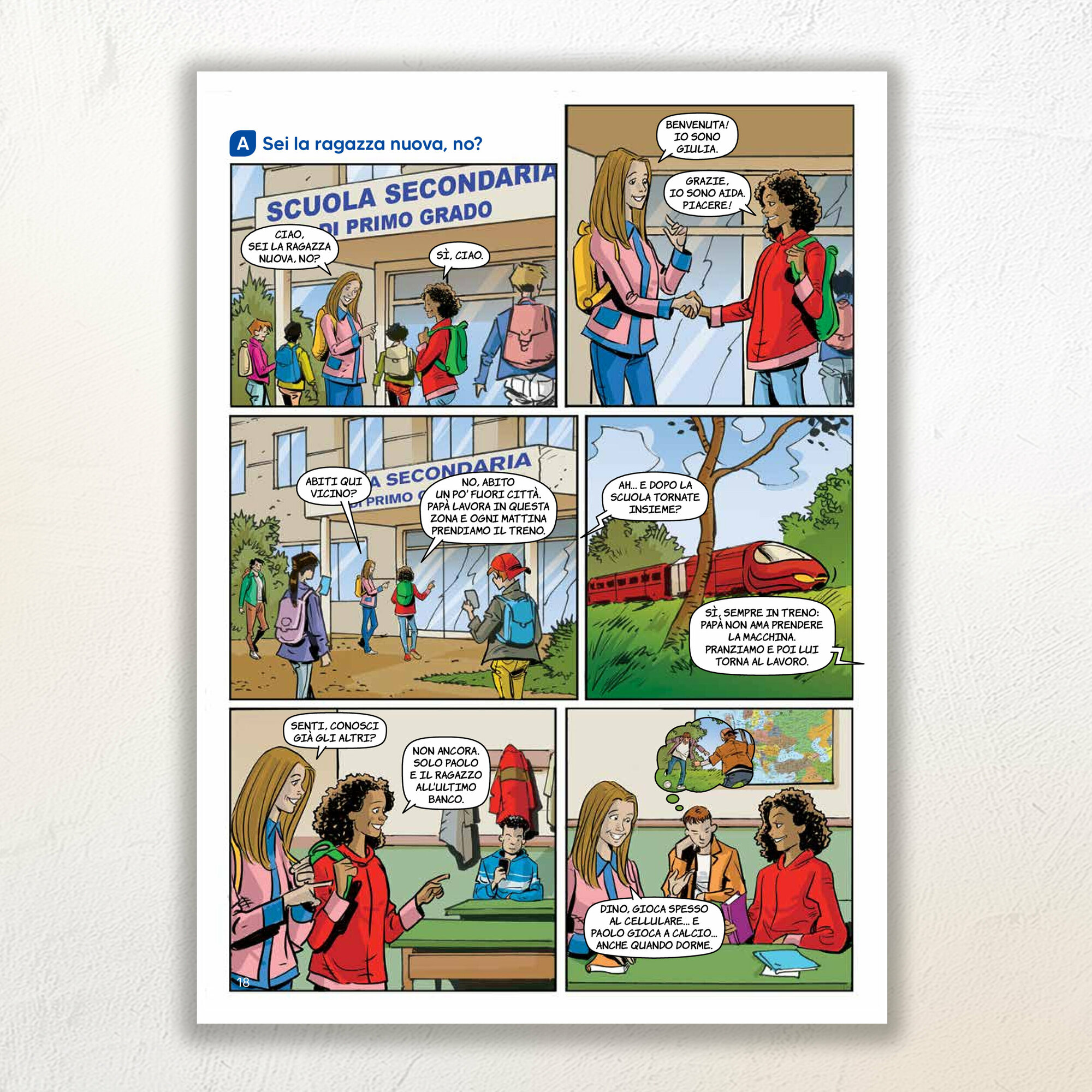 Il corso narra una simpatica storia, raccontata attraverso una graphic novel e una sit-сот, che ha per protagonisti quattro ragazzi italiani, con i quali gli studenti possono identificarsi in quanto hanno i loro stessi interessi, affrontano gli stessi problemi, vivono esperienze simili. Il tutto visto con realismo e umorismo, rispettando i ritmi e le esigenze di apprendenti giovani.