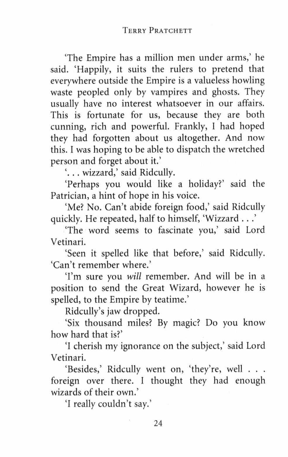’May you live in interesting times’ is the worst thing one can wish on a citizen of Discworld, especially on the distinctly unmagical Rincewind, who has had far too much perilous excitement in his life and can’t even spell wizard.
