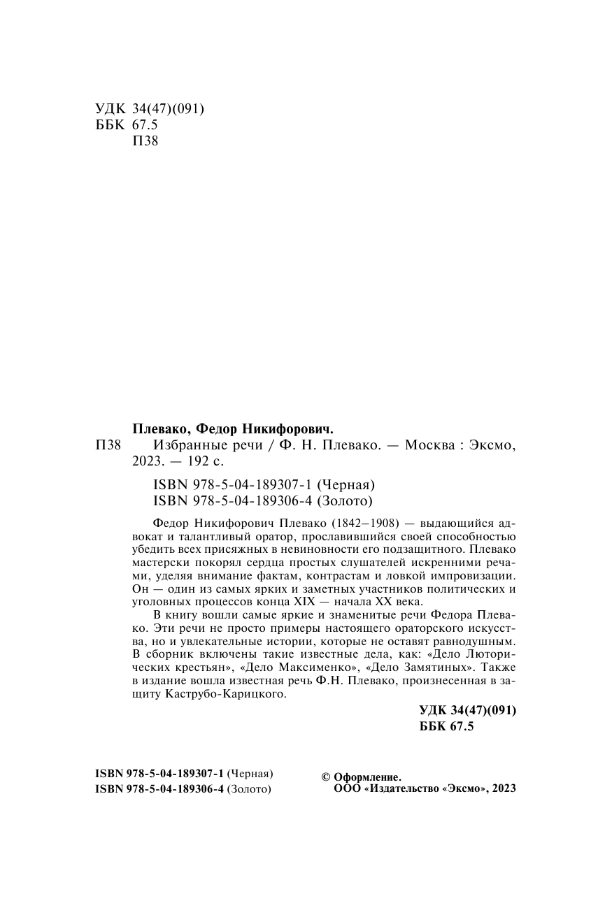 Книга: Избранные речи (Черная) (Плевако Федор Никифорович); ООО "Издательство "Эксмо", 2023