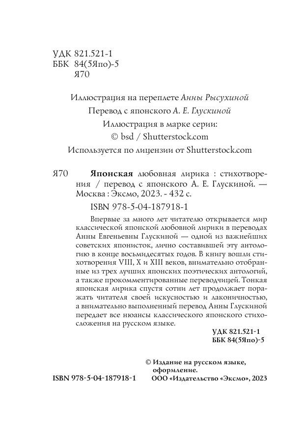 Книга: Японская любовная лирика (М. Сикибу, Сайгё-хоси, К. Хитомаро, Я. Акахито, О. Саканоэ, А. Нарихира и др.); Эксмо, Редакция 1, 2023
