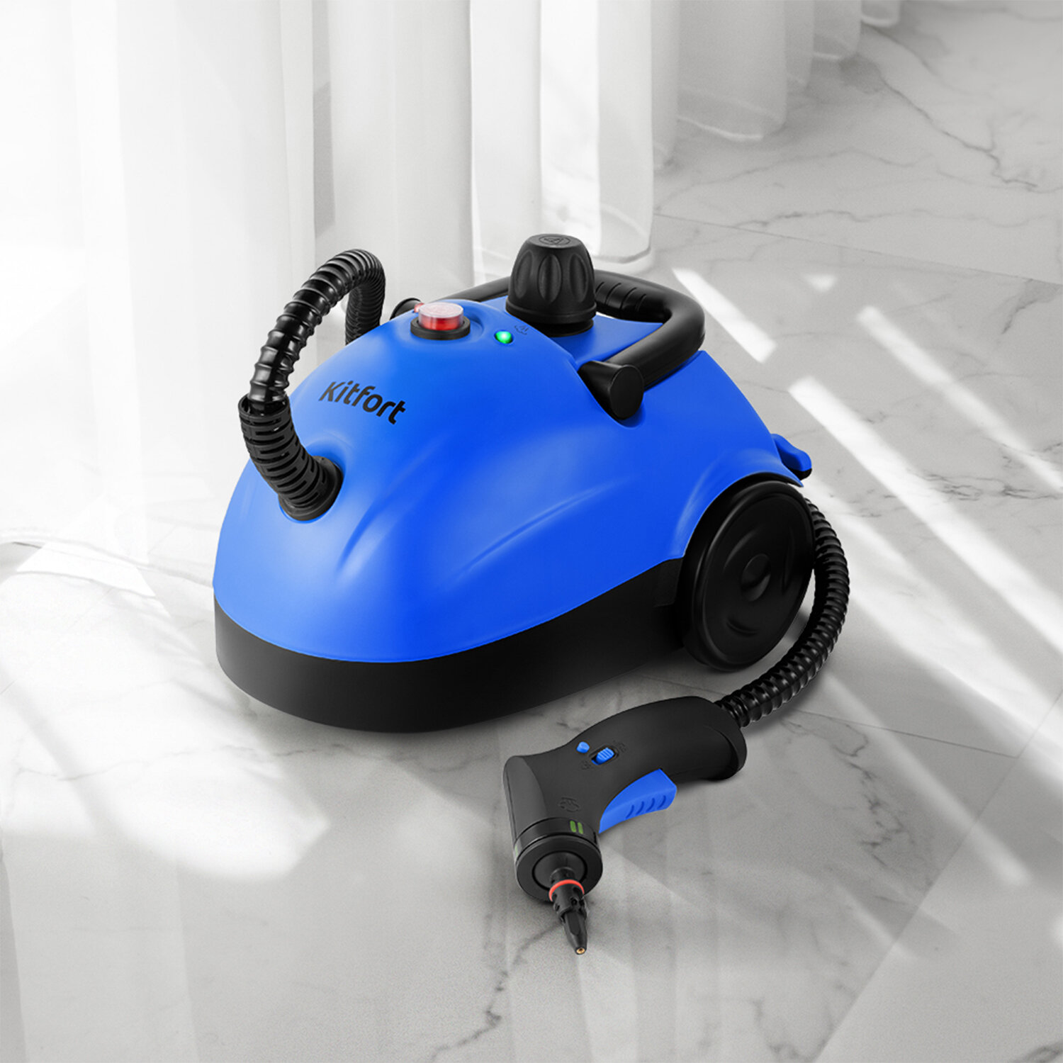Универсальный прибор для идеальной чистоты! Пароочиститель КТ-9136 предназначен для уборки интерьеров, полов, поверхностей, а также отпаривания тканей. КТ-9136 – многофункциональный аппарат, который может заменить паровую швабру, дезинфектор, стеклоочиститель и отпариватель. Удобная индикация Кнопка «Вкл/Выкл» запускает нагрев бойлера и отключает прибор. Индикатор работы загорается после нажатия на кнопку и горит всё время работы прибора. Индикатор готовности пара загорается, когда бойлер нагрелся, и пароочиститель готов к подаче пара. Простое управление Управление располагается на паровом пистолете. Кнопка подачи пара располагается под пальцем. Чтобы предотвратить случайное нажатие на кнопку подачи пара, на паровом пистолете есть блокиратор. Набор насадок для разных случаев уборки Скребок для стекла используется для чистки окон, зеркал, кафеля. Струйная насадка подходит для чистки плинтусов, щелей и других углов. Щётки - для удаления стойких загрязнений. С тряпкой можно отпаривать одежду, шторы, мягкую мебель. Идеальная чистота полов Для того, чтобы использовать прибор как паровую швабру, присоедините щётку с адаптером к удлинительной трубке. После наденьте тряпку для пола на щётку. Теперь чистота полов гарантирована! Ёмкость бойлера 1 литр Ёмкость бойлера пароочистителя 1 литр. Для удобного и безопасного наливания воды в бойлер в комплекте идут воронка и мерный стакан. Защитные механизмы для безопасной работы Датчик давления поддерживает давление в бойлере в рабочем диапазоне. При достижении максимального значения нагрев выключается и включается вновь при падении давления. Крышку бойлера нельзя снять с прибора во время работы прибора. Удаляет жир, грязь и известковые отложения Пароочиститель очищает поверхности от пятен при помощи горячего пара. В случае сильного загрязнения используйте вспомогательные насадки из комплекта, а также чистящие средства. Продуманные детали для вашего удобства Пароочиститель оснащён ручкой для переноски, которую можно сложить, чтобы она не мешал во время работы. Также с двух сторон прибора есть колёса для транспортировки прибора при необходимости. Комфортная уборка За счёт своей гибкости шланг поможет в уборке труднодоступных мест. А благодаря удобной ручке и компактному размеру пароочиститель можно без труда поднимать и доставать до мест, находящихся выше человеческого роста.