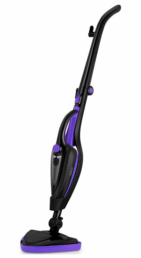 Паровая швабра "2 в 1" Kitfort – устройство, способное эффективно устранить загрязнения и провести дезинфекцию поверхности с помощью пара. Прибор можно использовать как 5 устройств: паровая швабра, ручной пароочиститель, стеклоочиститель, отпариватель и дезинфектор. При хранении паровая швабра занимает меньше места, чем её классические предшественники. Для владельцев небольших квартир приобретение модели с вертикальной парковкой будет оптимальным решением! Напольная щётка очень манёвренная благодаря специальному шарниру с наклоном в двух плоскостях. Тряпка для пола устанавливается на напольную щётку с помощью липучек. В комплекте есть рамка для ковра для скольжения по ворсу. В комплекте одна угловая и плоская насадки для труднодоступных мест, например щелей и углов. А также три нейлоновые щётки, которые подойдут для стойких загрязнений, когда требуется механическое воздействие. Чтобы помыть окна, зеркала и кафельную плитку, присоедините насадку - скребок. Насадка со скребком и тряпочкой используется для отпаривания вещей и других текстильных предметов. Резервуар для воды 380 мл, этого хватает на 20 минут уборки. Мерным стаканчиком в комплекте будет удобно залить воду. Кнопка над резервуаром включает и выключает нагрев, а регулятор под ним меняет уровень подачи пара. При хранении швабра не займёт много места. Шнур длиной 4,9 м не сковывает и не ограничивает ваше перемещение во время уборки. На ручке и корпусе швабры имеются держатели для смотки шнура. Множество насадок, которые идут в комплекте с паровой шваброй, помогут отчистить труднодоступные места и различные поверхности.