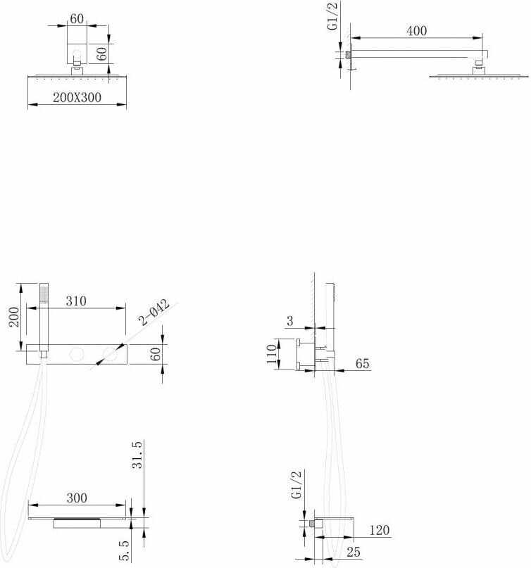 - Размер верхнего душа (ШхД): 300х200 мм.