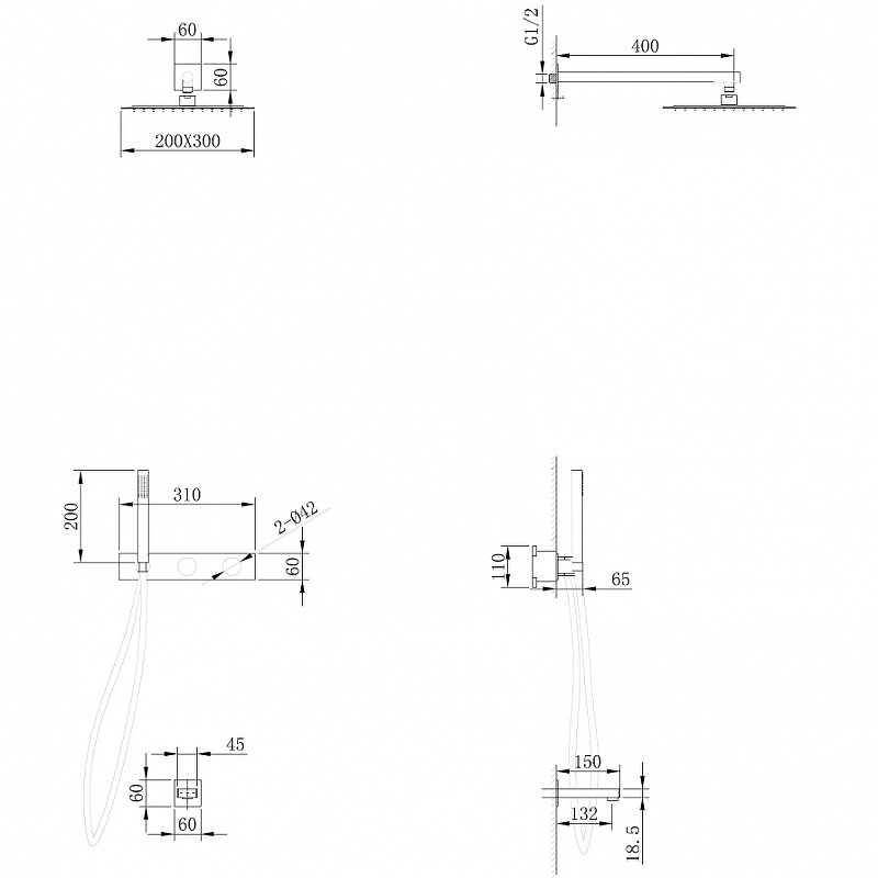 - Размер верхнего душа (ШхД): 300х200 мм.
