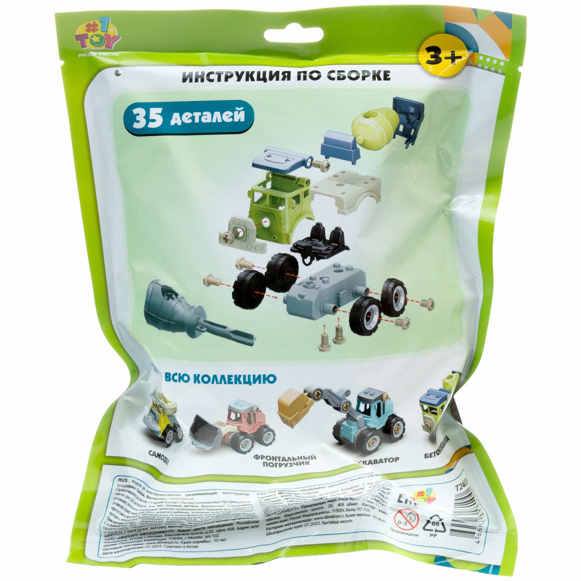 Детский конструктор "Новостройка" от бренда 1TOY представлен в ассортименте в 4 вариациях: фронтальный погрузчик, бетономешалка, самосвал, экскаватор. В зависимости от вида конструктор содержит от 32 до 36 деталей. Из деталей согласно инструкции с помощью специальной отверки, которая также идет в комплекте, собирается строительная техника! Соберите всю коллекцию! Конструктор упакован в индивидуальный пакет. Конструктор предназначен для детей от 3-х лет.