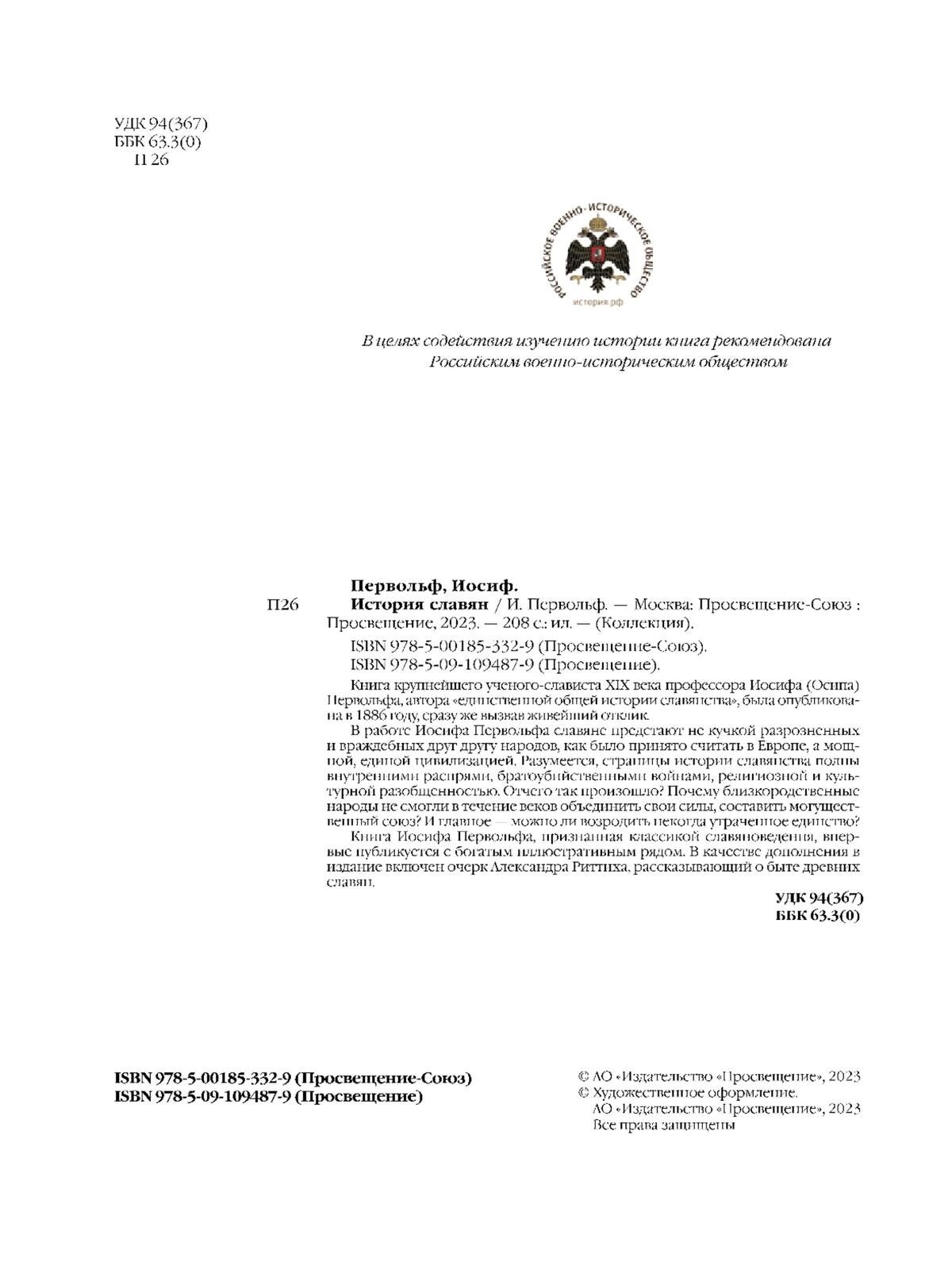 Книга: История славян (Первольф Иосиф Иосифович); Просвещение-Союз, 2023