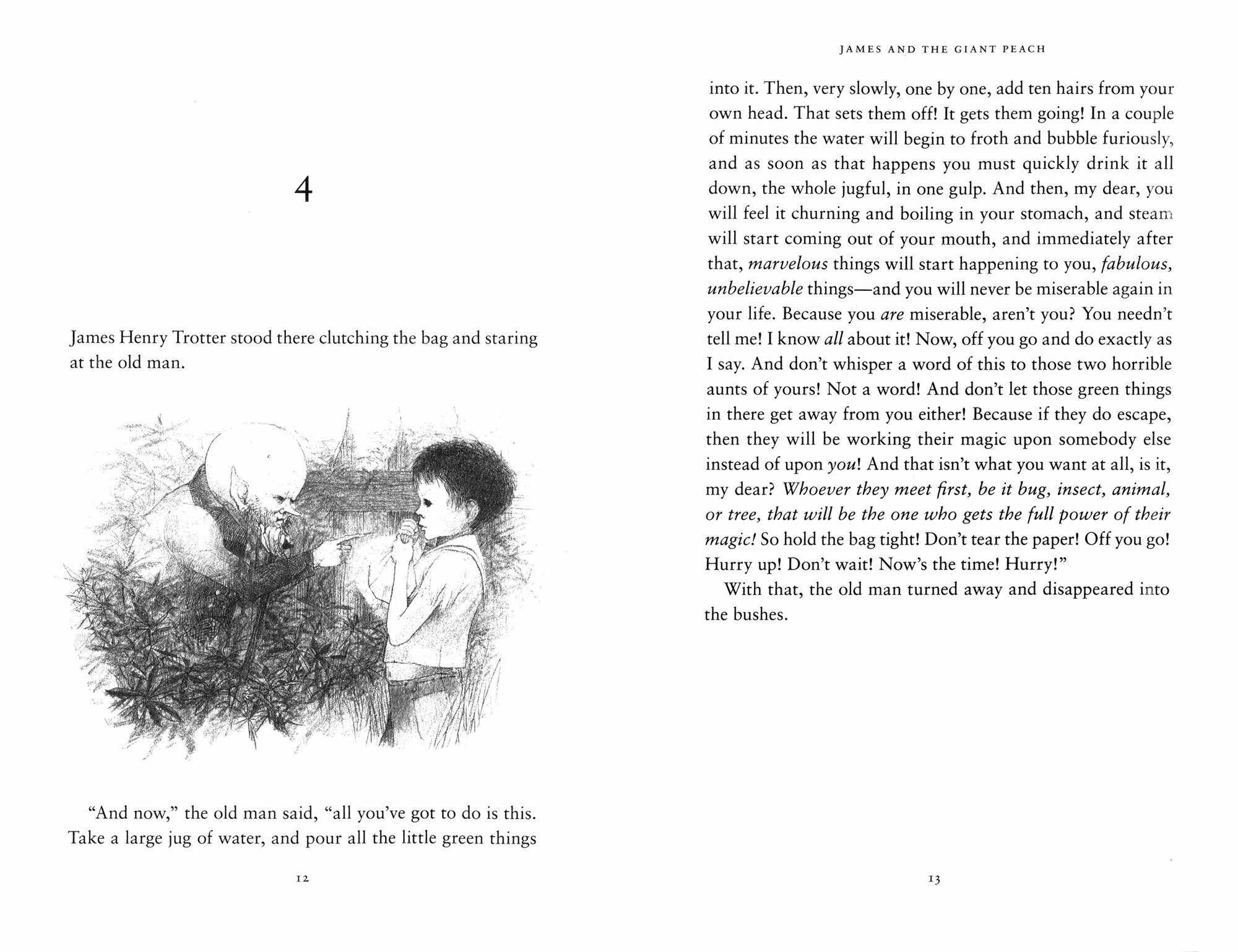 An enormous escaped rhinoceros from London Zoo has eaten James's parents. And it gets worse! James is packed off to live with his two really horrible aunts, Sponge and Spiker. Poor James is miserable, until something peculiar happens and James finds himself on the most wonderful and extraordinary journey he could ever imagine...