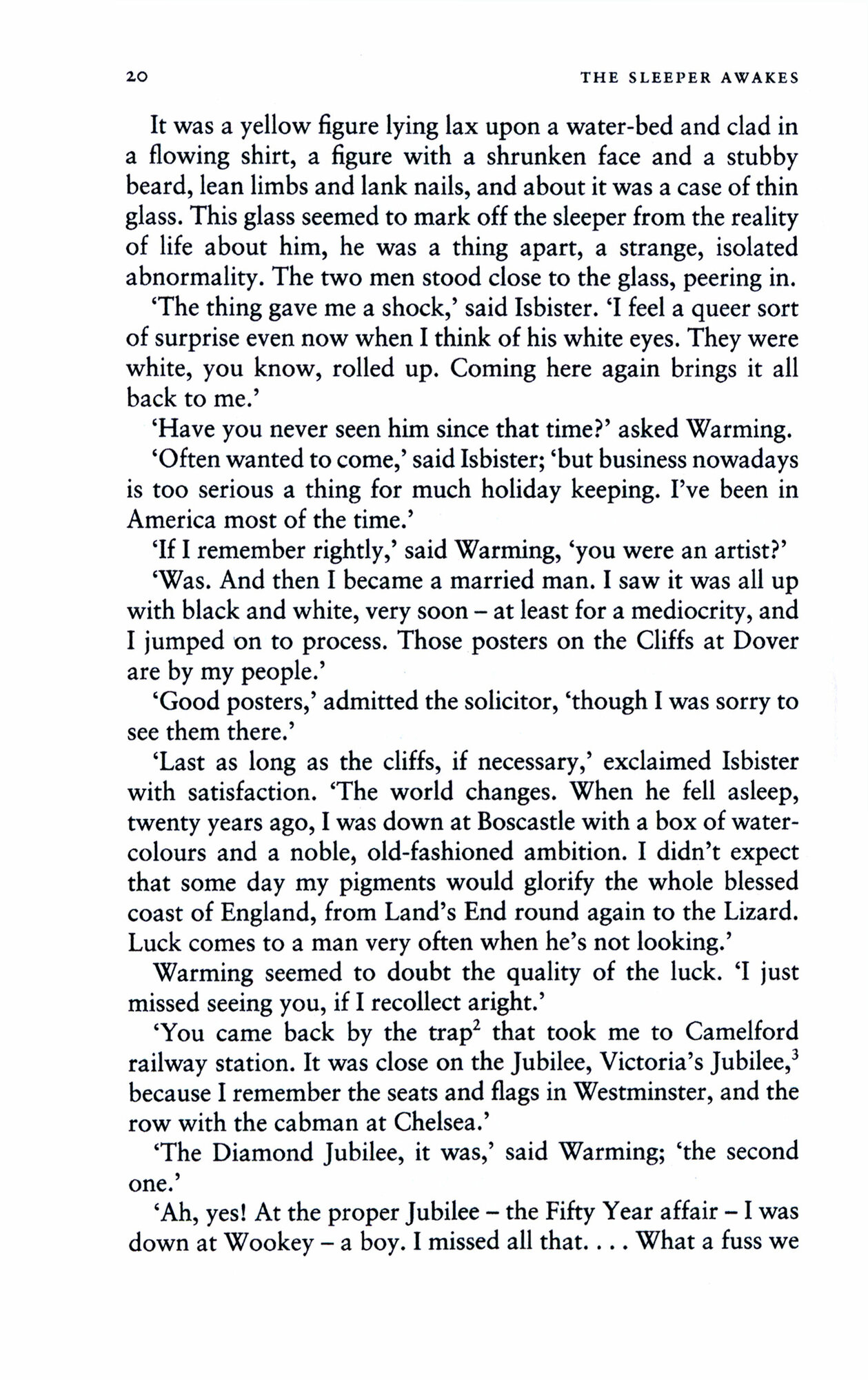 A troubled insomniac in 1890s England falls suddenly into a sleep-like trance, from which he does not awake for over two hundred years. During his centuries of slumber, however, investments are made that make him the richest and most powerful man on Earth. But when he comes out of his trance he is horrified to discover that the money accumulated in his name is being used to maintain a hierarchal society in which most are poor, and more than a third of all people are enslaved. Oppressed and uneducated, the masses cling desperately to one dream - that the sleeper will awake, and lead them all to freedom.