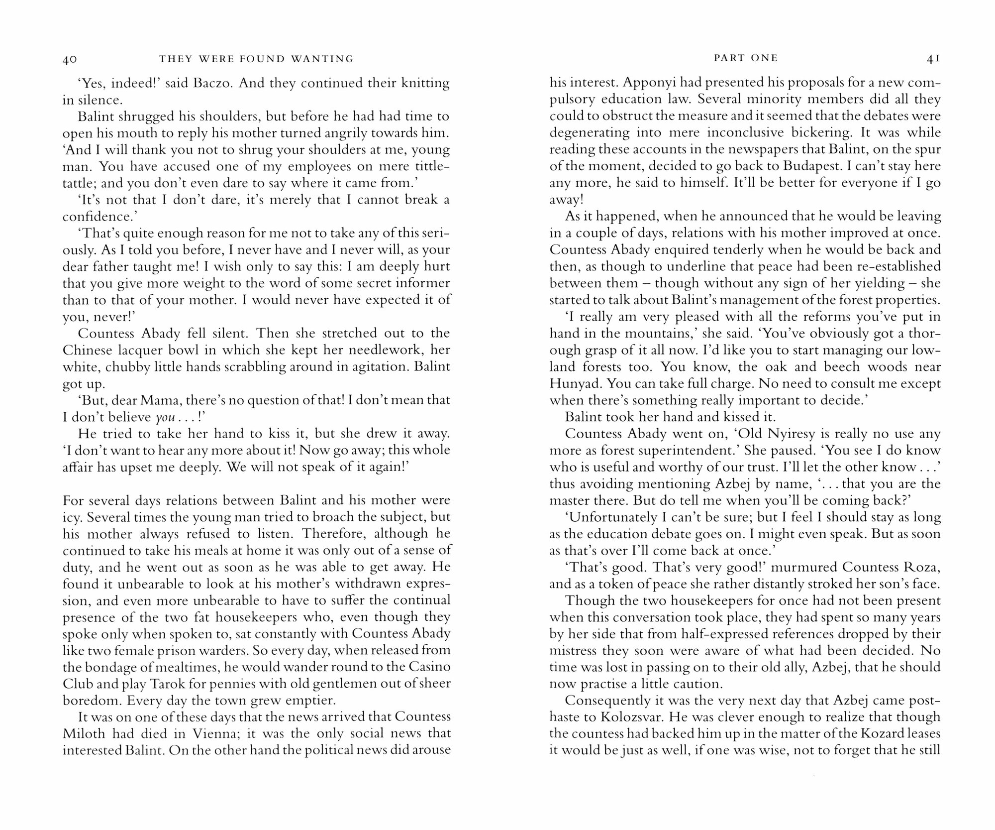 The liberal hero, Balint, is at odds with the politics of his time; he lyrically describes the idyllic pre-industrial world of Hungarian Transylvania, later to fall into the hands of first the Nazis and then the Communists, his love for Adrienne, married to an unpleasant and dangerous lunatic, and a Proustian society helplessly bent on its own destruction.This is a novel hard to put down, a masterpiece of twentieth-century literature that deserves to be much more widely known.First published in English in the early 1990s by a small publisher, and a huge word-of-mouth success, this is the first edition in hardback, and in two rather than three volumes.