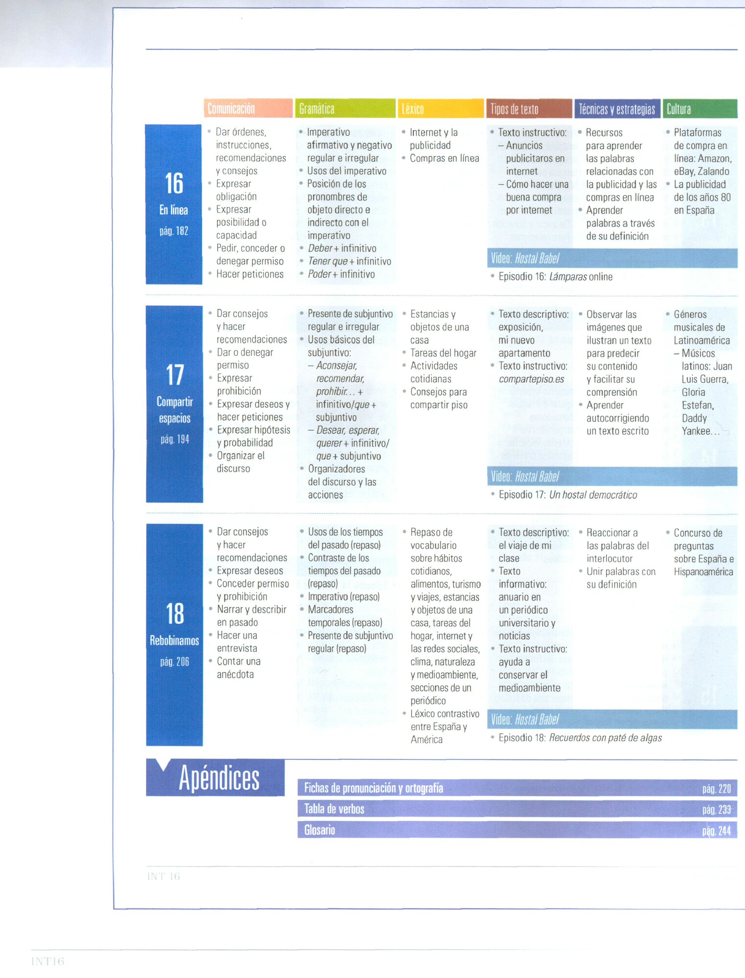 Recursos extras en la ELEteca: material proyectable o imprimible, audiciones y transcripciones de las actividades, apendices y recursos adicionales, y los videos de la serie Hostal Babel junto con sus transcripciones.