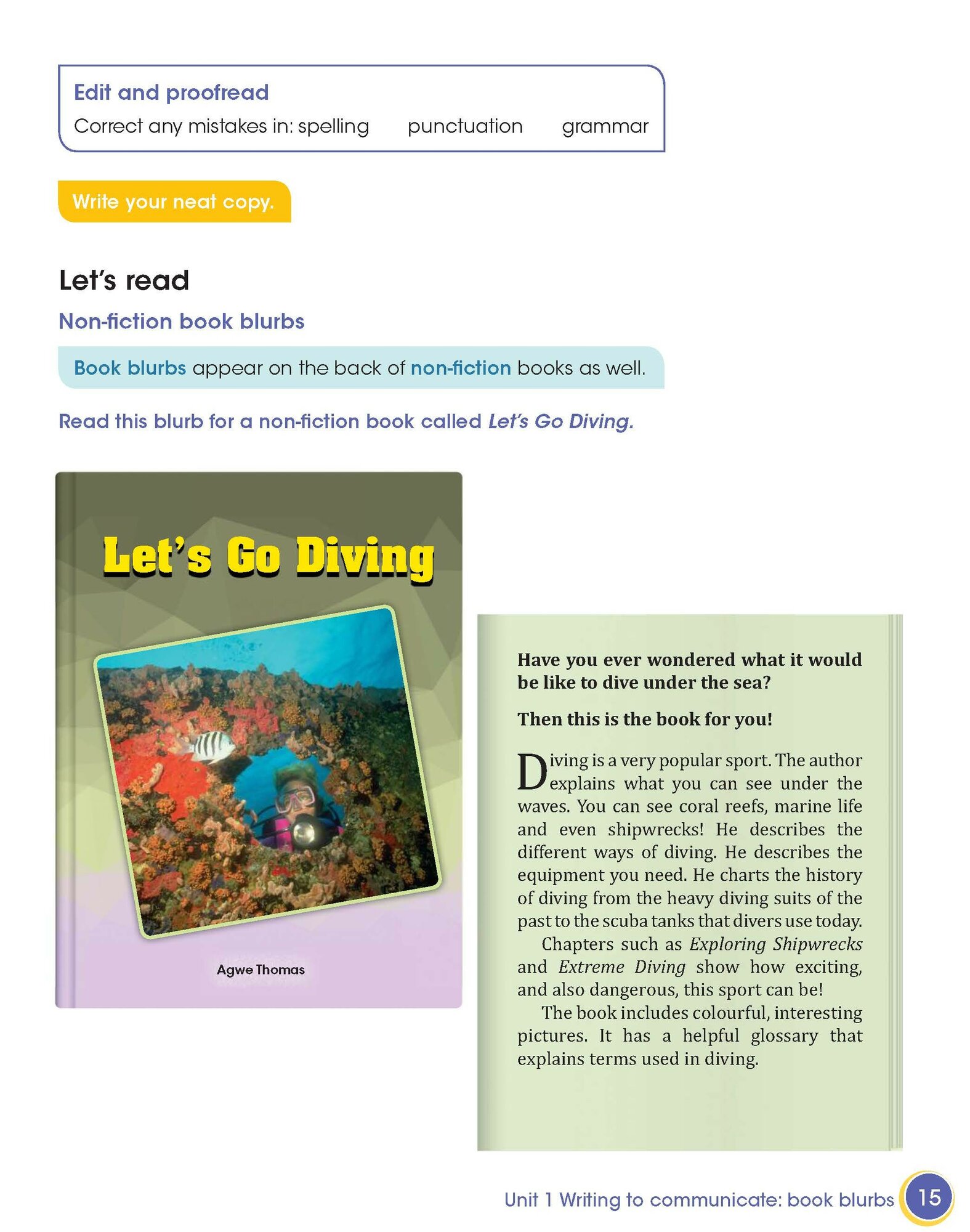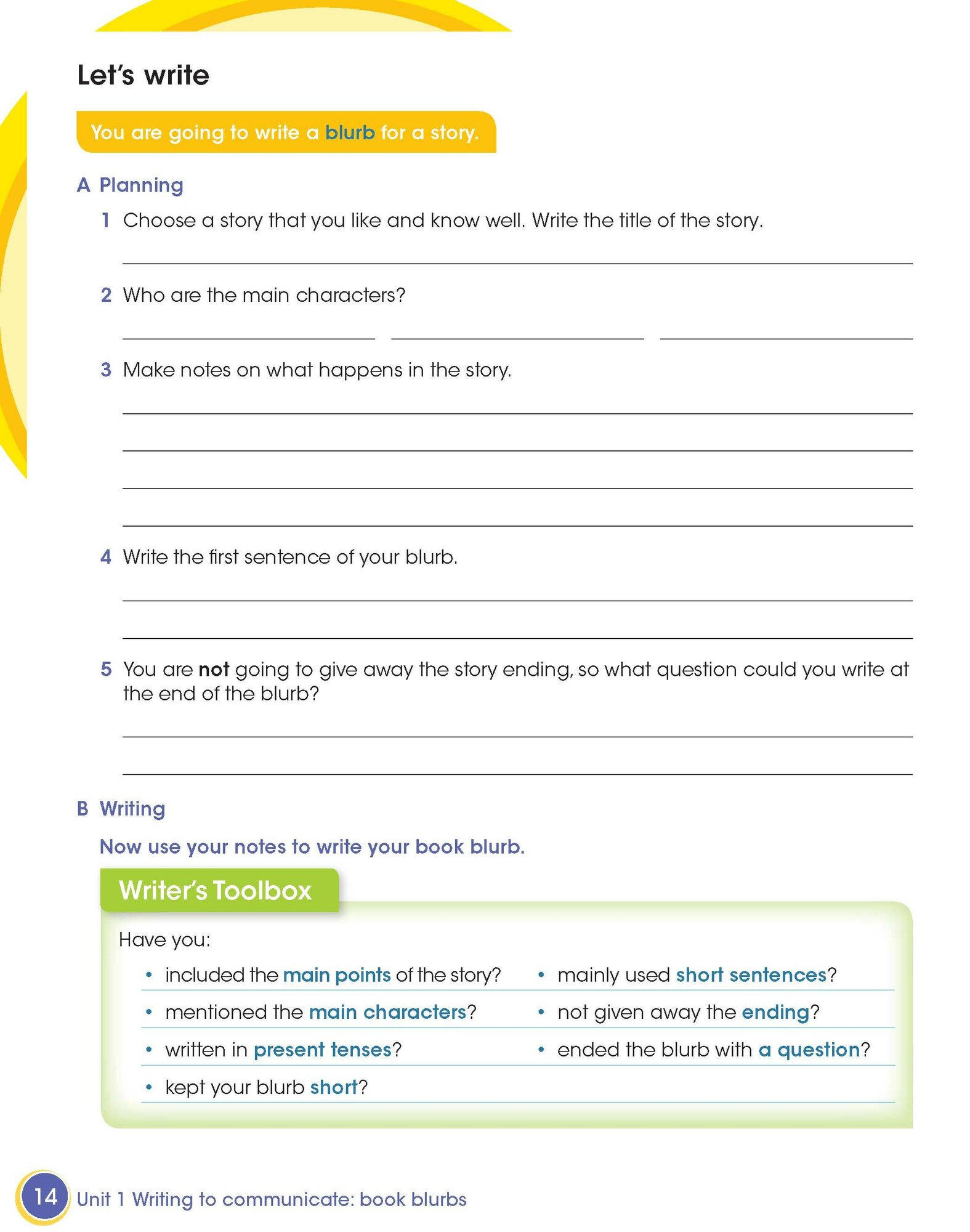 Introduce your learners to creative writing and writing for a purpose. They’ll write a haiku about the moon and a recipe for panna cotta, helping build their extended writing skills as they progress through the units. Each unit focuses on a different text type such as dialogue, recounts, reports or instructions. Model texts in each chapter show learners good examples of each writing type and specific activities are included to help them practise their grammar. Planning tools and an extended writing task develop learners’ essential skills including editing, checking, planning and creative thinking.