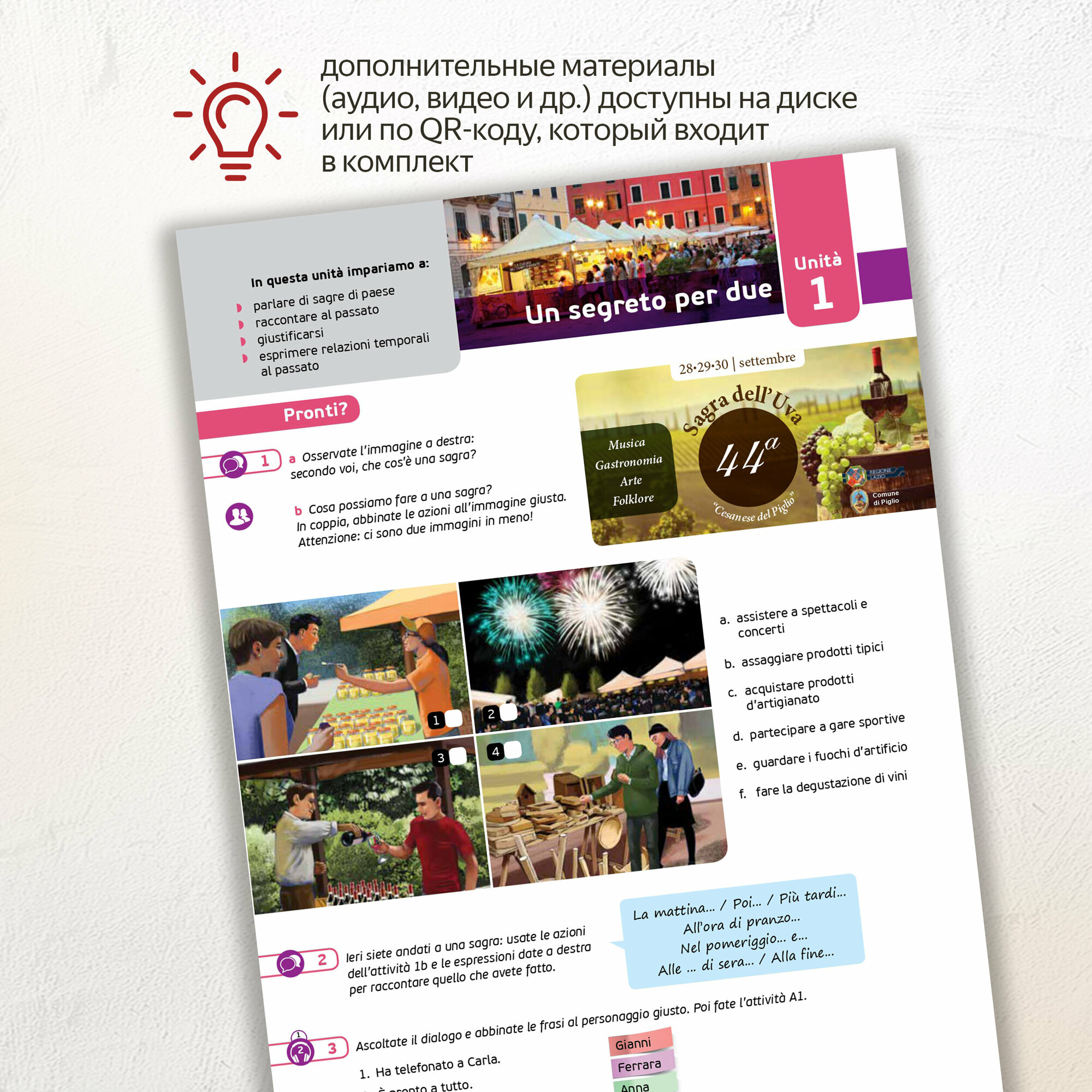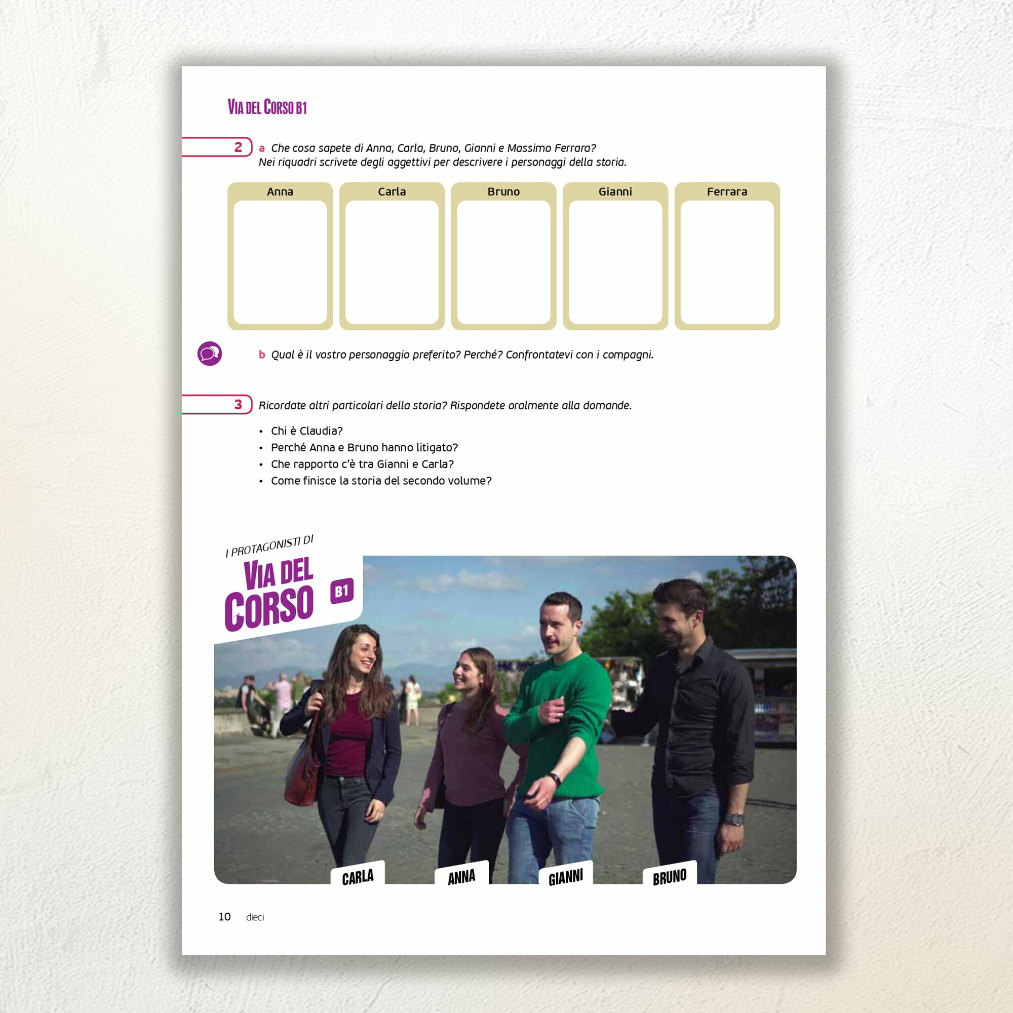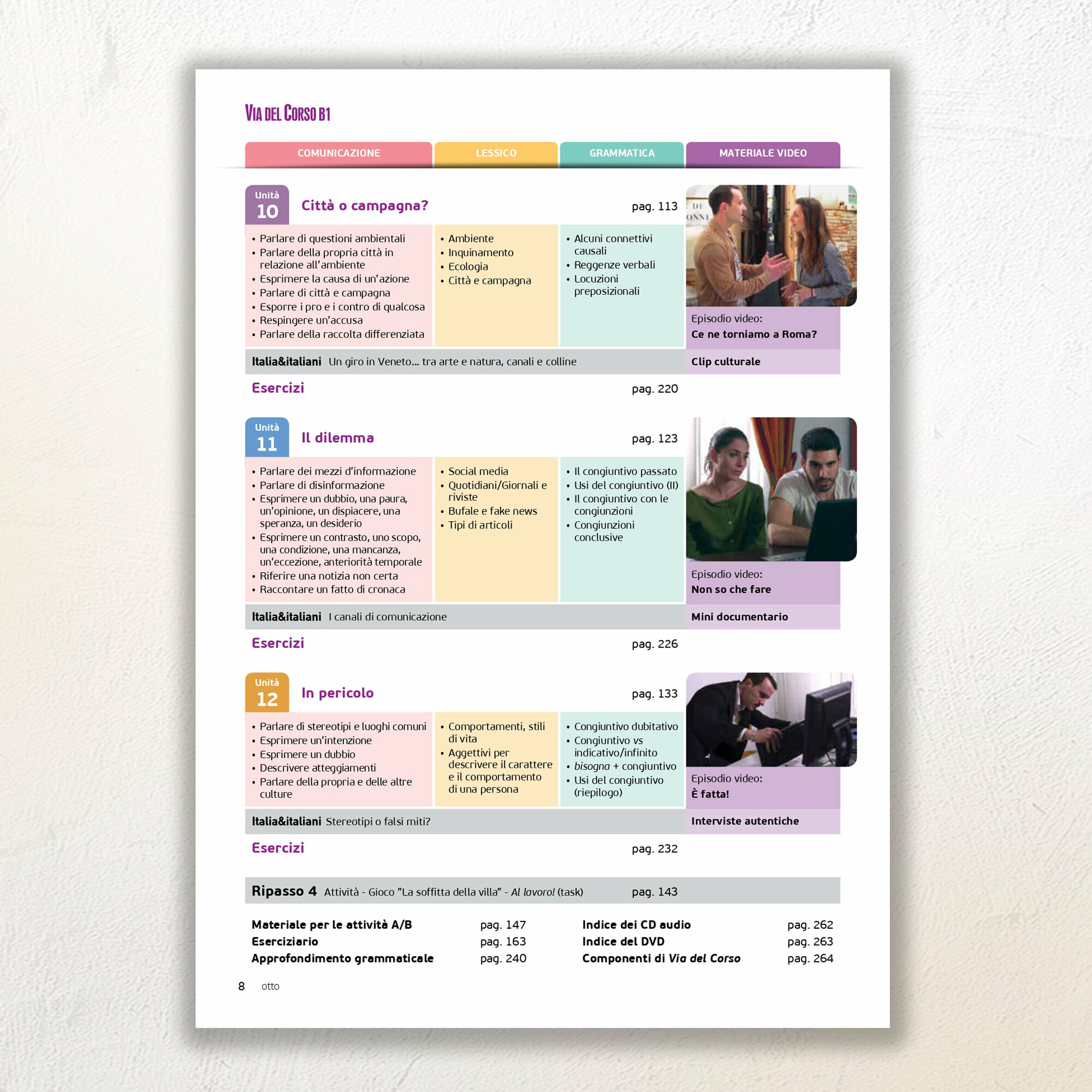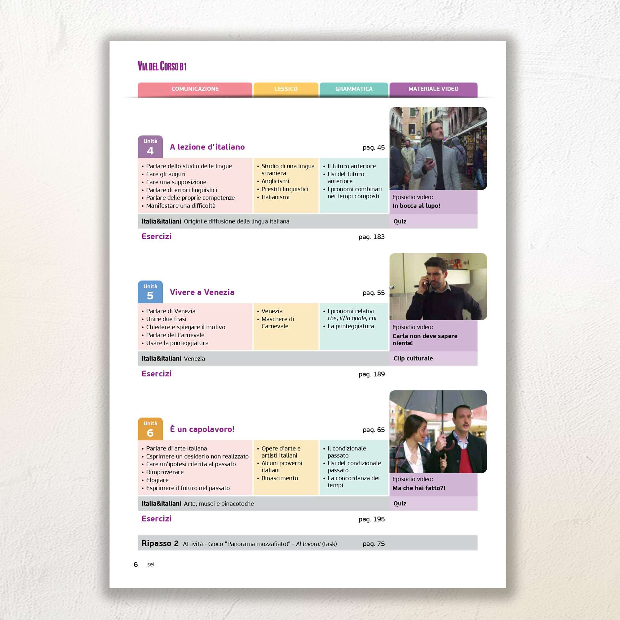E un innovation corso di lingua e cultura italiana per adulti о giovani adulti, diviso in quattro livelli (A1, A2, B2).