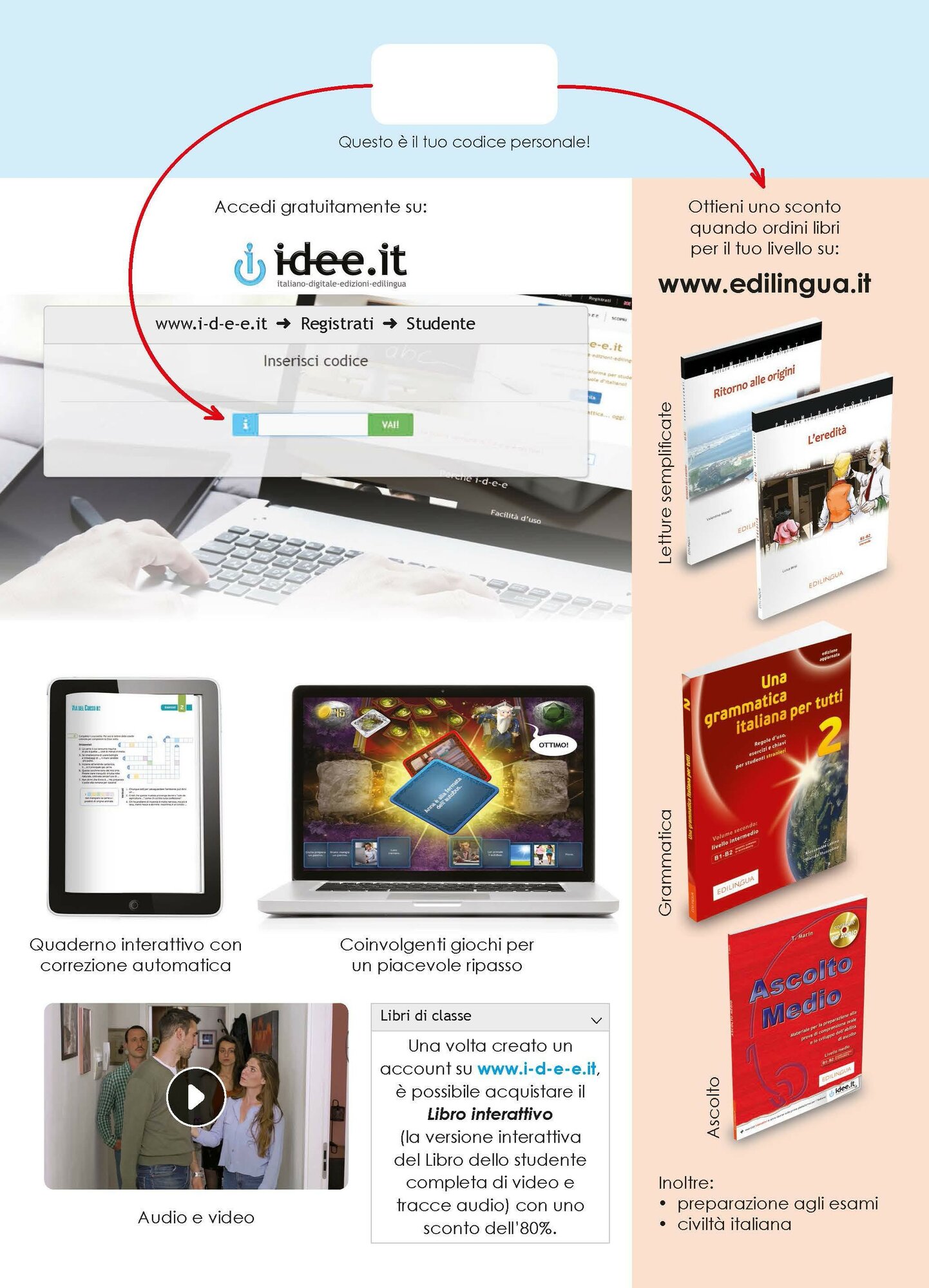 E un innovation corso di lingua e cultura italiana per adulti о giovani adulti, diviso in quattro livelli (A1, A2, B2).