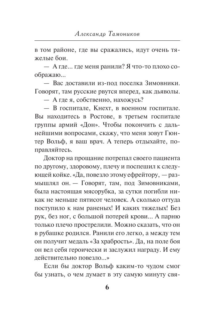 Советское командование планирует освободить Ростов-на-Дону, чтобы запереть фашистов на Северном Кавказе. На первом этапе решено перерезать противнику железнодорожное сообщение. Сделать это нужно молниеносно, но где взять точные разведданные о глубине обороны фашистов? Капитан Глеб Шубин получает приказ добыть нужные сведения. Через линию фронта проникнуть в расположение гитлеровцев практически невозможно — враг усилил бдительность. У разведчиков зреет необычный и очень дерзкий план. Шубину предстоит на время стать… пациентом немецкого военного госпиталя…