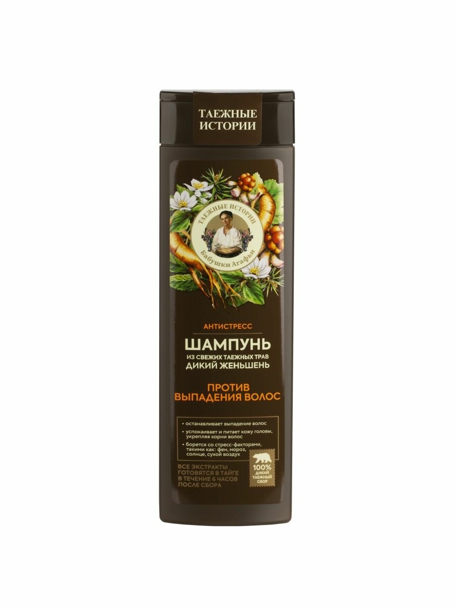 Шампунь Бабушки Агафьи Дикий женьшень против выпадения волос Таежные истории 500 мл Рецепты бабушки Агафьи
