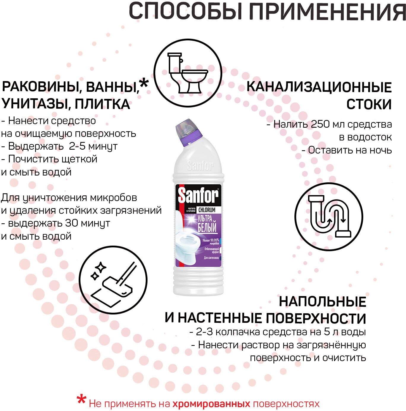 Сервис сравнения цен СкидкаГИД предлагает сравнить цены на товар «Гель для уборки сантехники Sanfor ультра белый 1000 г»