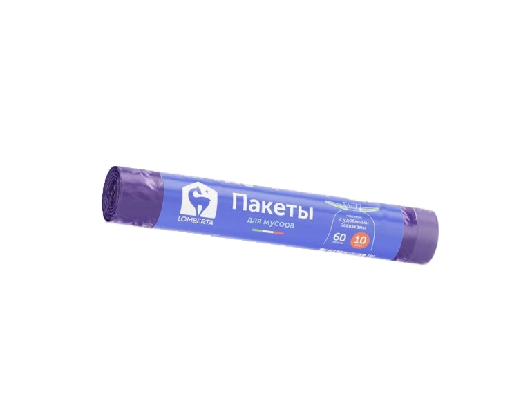 Пакеты для мусора Lomberta с затяжкой 60 литров 10 шт с принтом, предназначены для большого или нестандартного мусорного ведра. Усиленный сварный шов обеспечивает устойчивость к разрывам.
